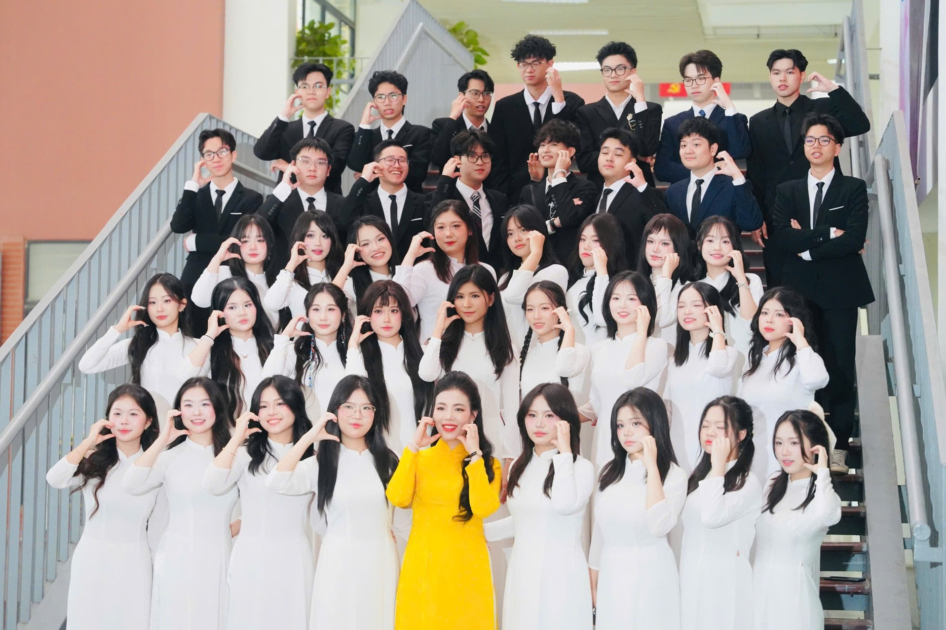 Trần Bùi Bảo Khánh cùng tập thể lớp 12 Sinh của Trường THPT Chuyên Hà Nội - Amsterdam.