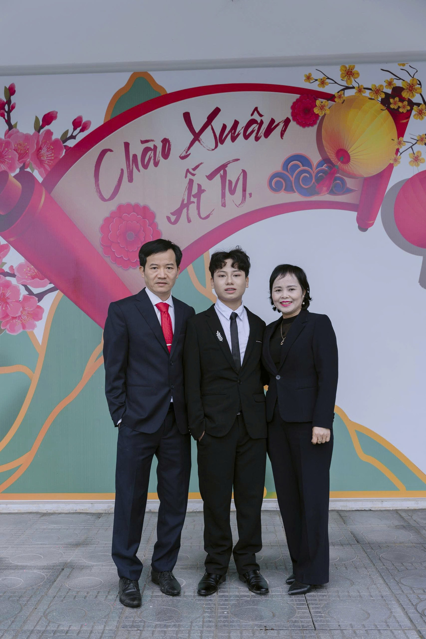Trần Đoàn Việt cùng bố mẹ tại buổi chụp kỷ yếu lớp 12.