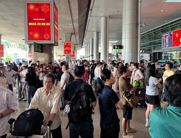 Hành khách đứng đông đúc tại sân bay Tân Sơn Nhất những ngày đầu năm mới.