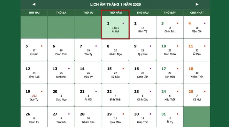 Theo lịch dương, Tết Dương lịch ngày 1/1/2026 sẽ rơi vào ngày thứ Năm trong tuần.