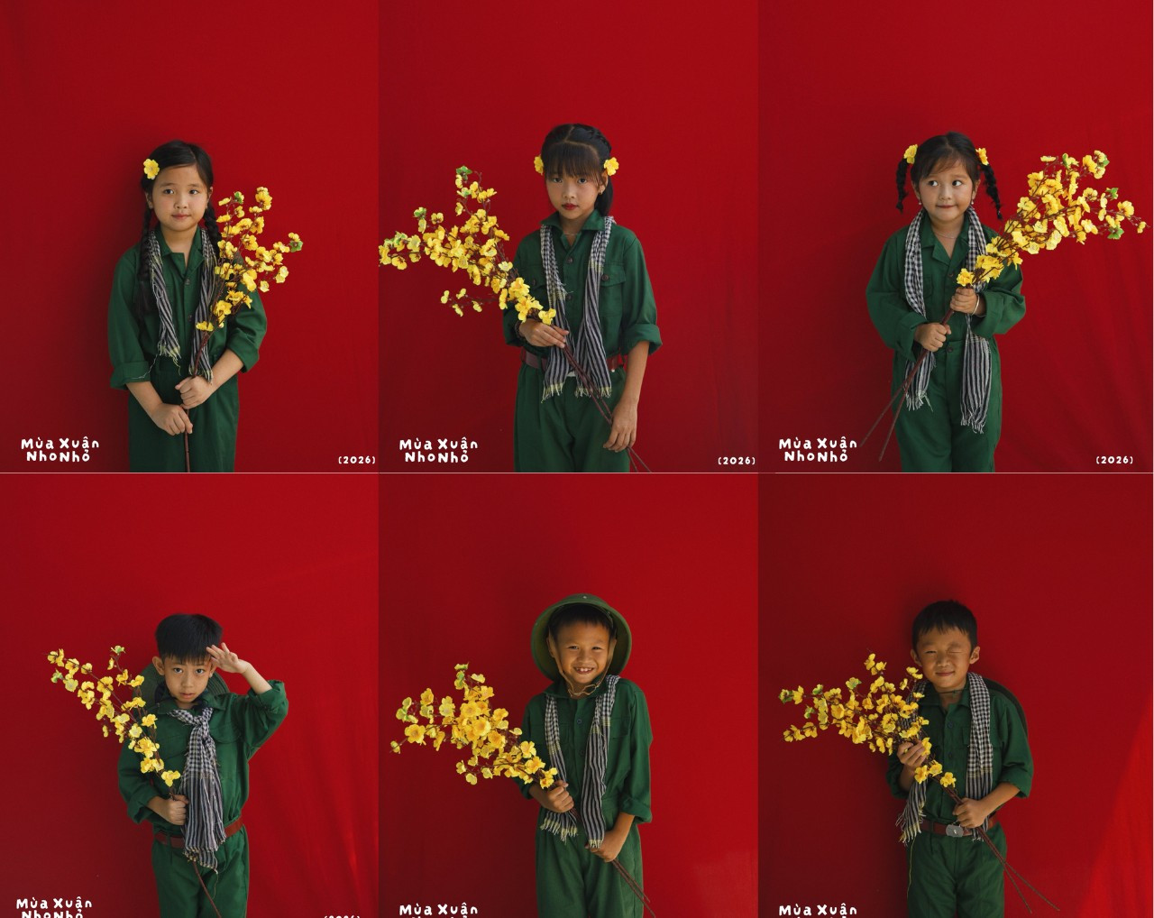 Concept bộ ảnh “Mùa Xuân nho nhỏ” năm 2026 tương đối đơn giản nhưng mang đến cho mọi người nhiều cảm xúc. Mỗi cô chú tần tảo làm công việc hằng ngày của mình và nhóm Sơn Đoàn cứ thế ghi lại những khoảnh khắc đời thường chân thành. Các em nhỏ thì lại diện trang phục bộ đội, cầm trên tay nhành hoa mai, tạo dáng trước phông nền màu đỏ. Tất cả tạo nên những bức ảnh vô cùng dễ thương.