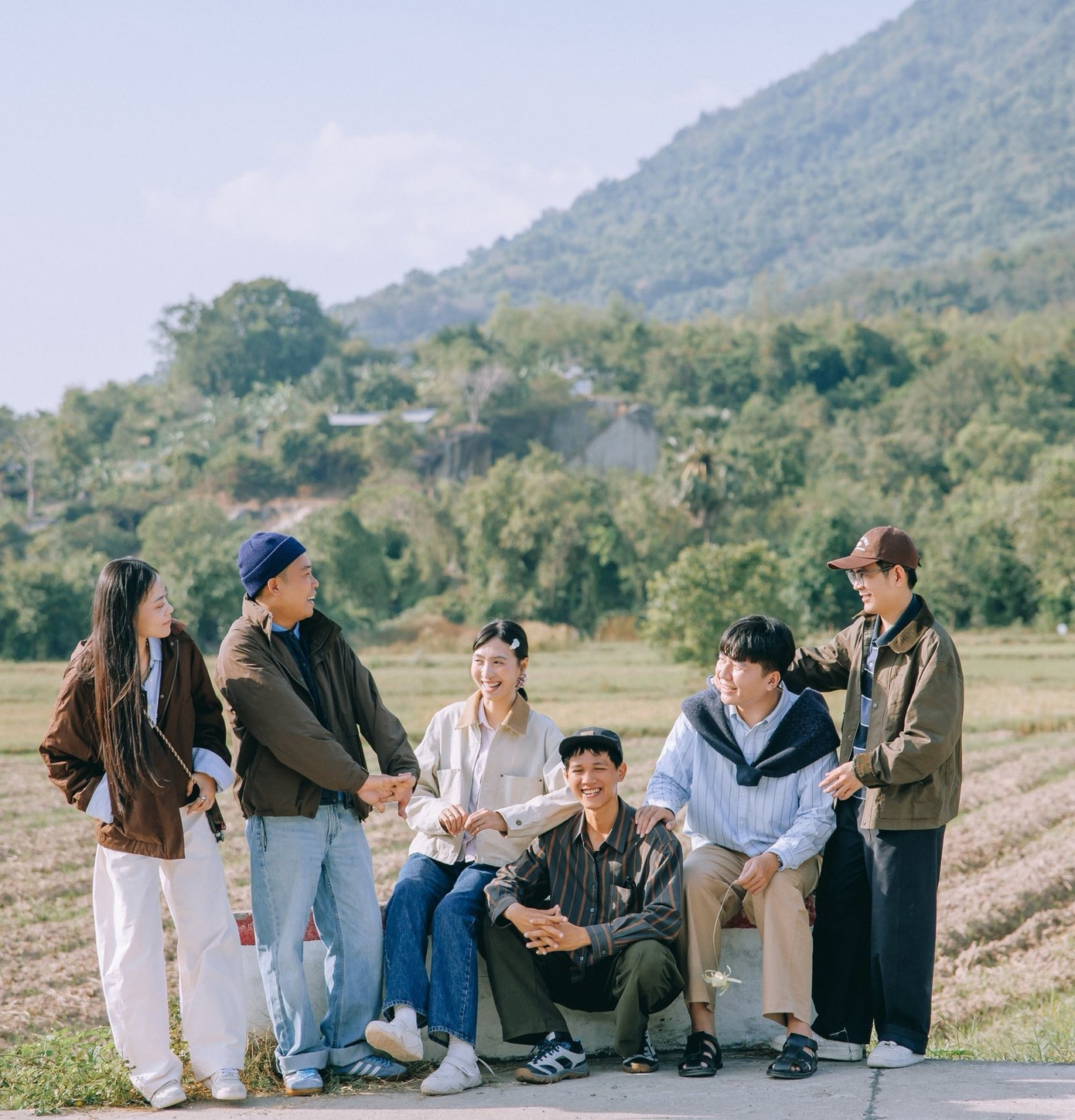Các thành viên thực hiện bộ ảnh "Mùa Xuân nho nhỏ" tại An Giang.