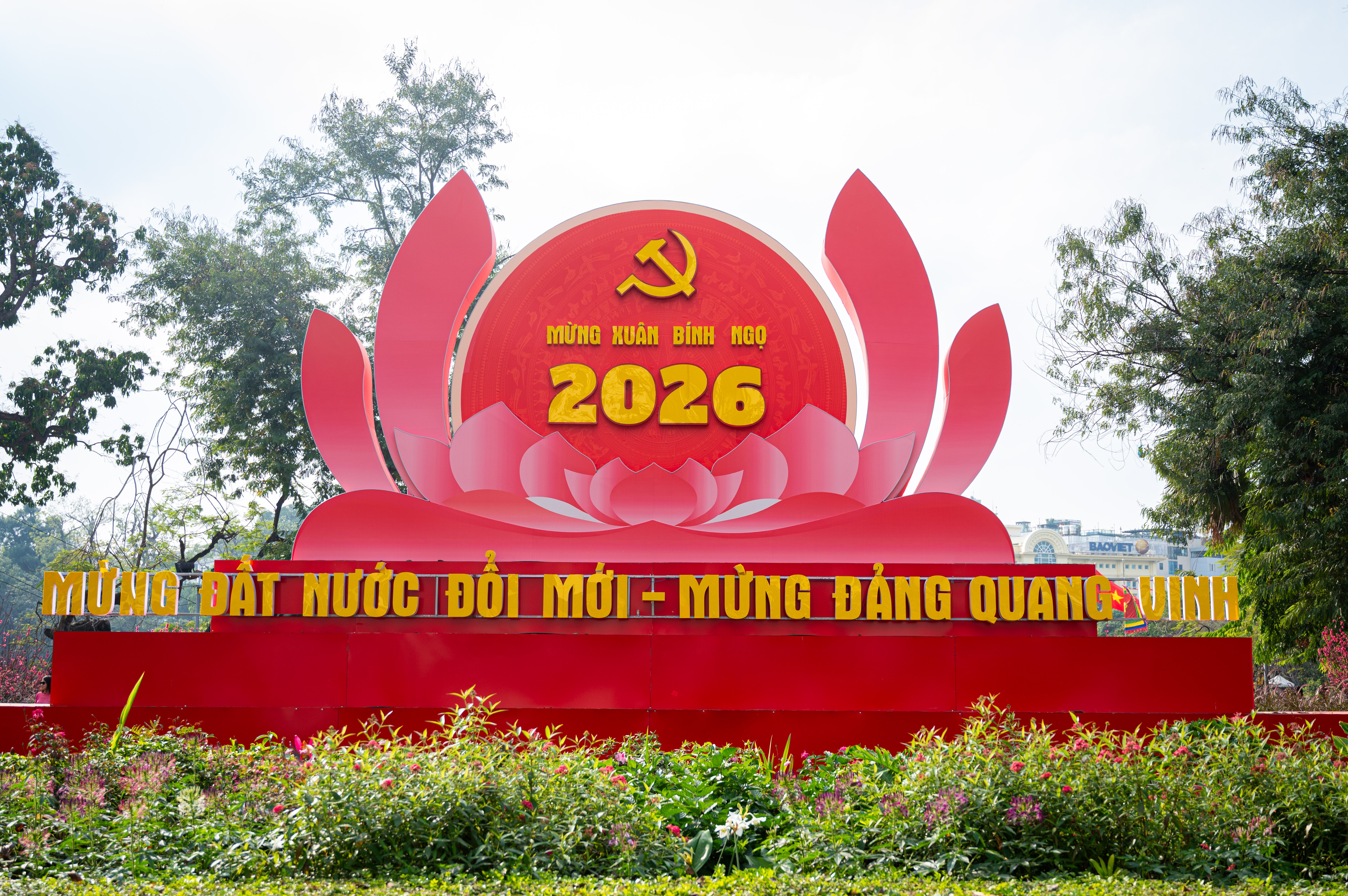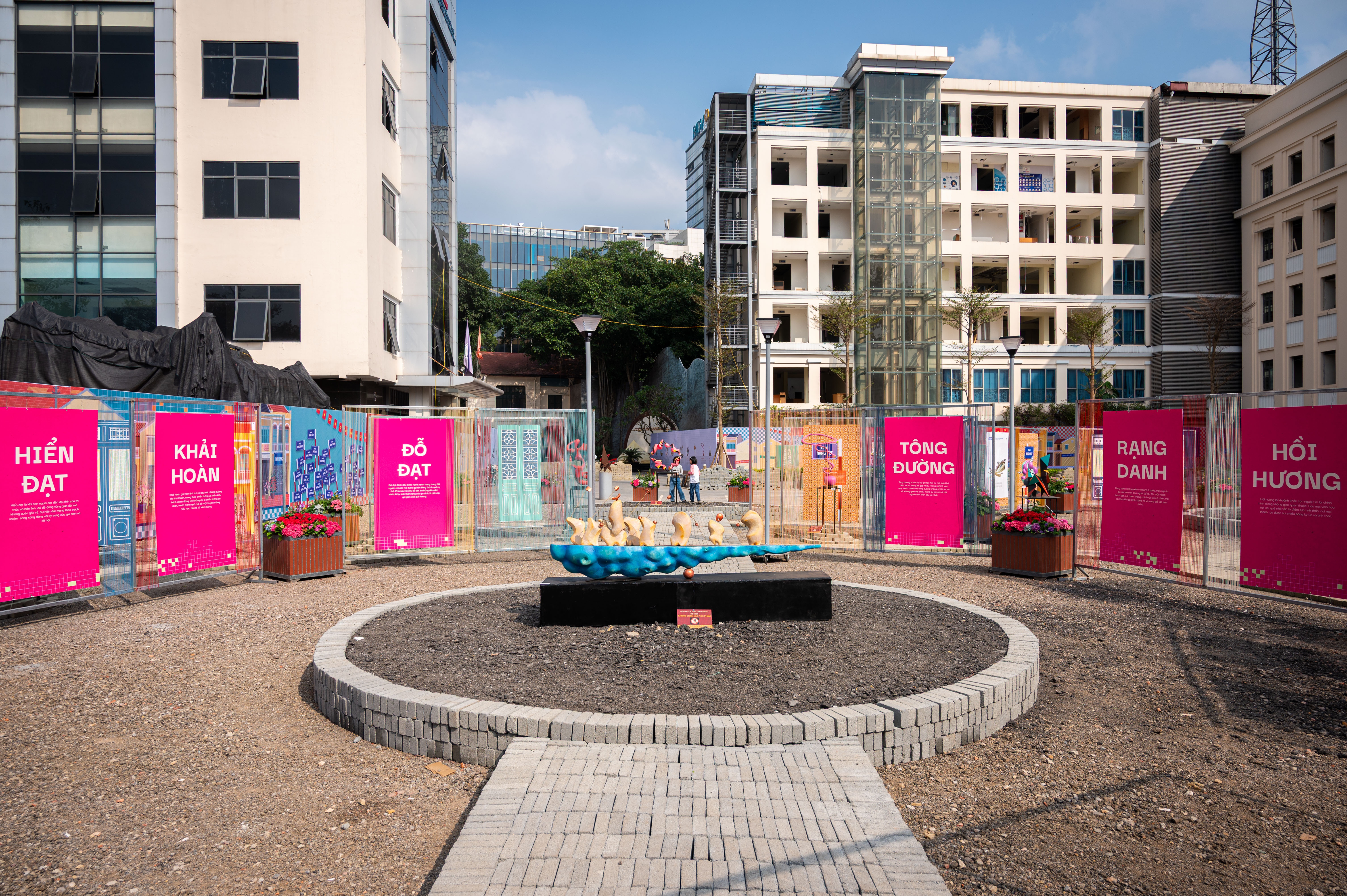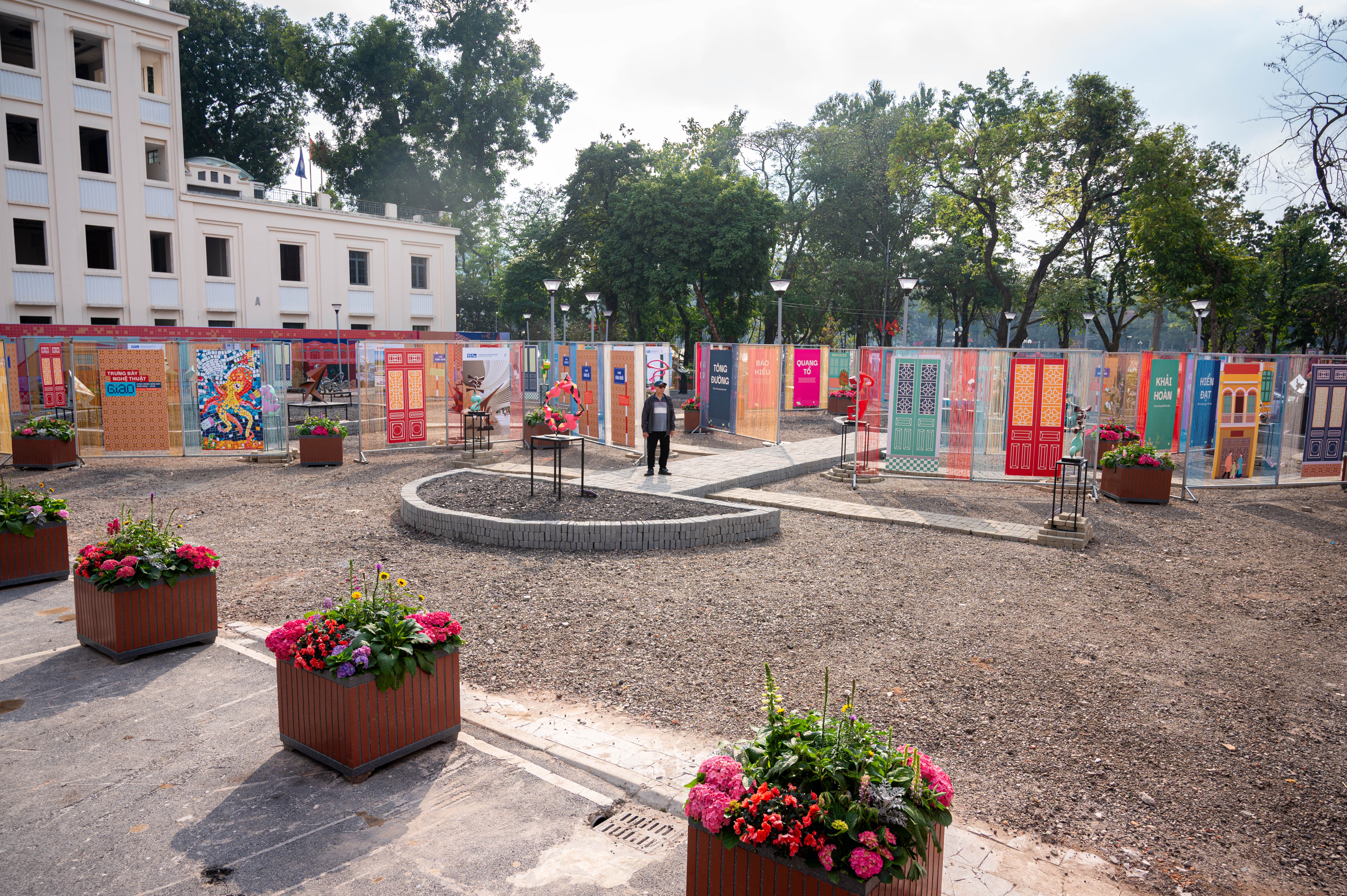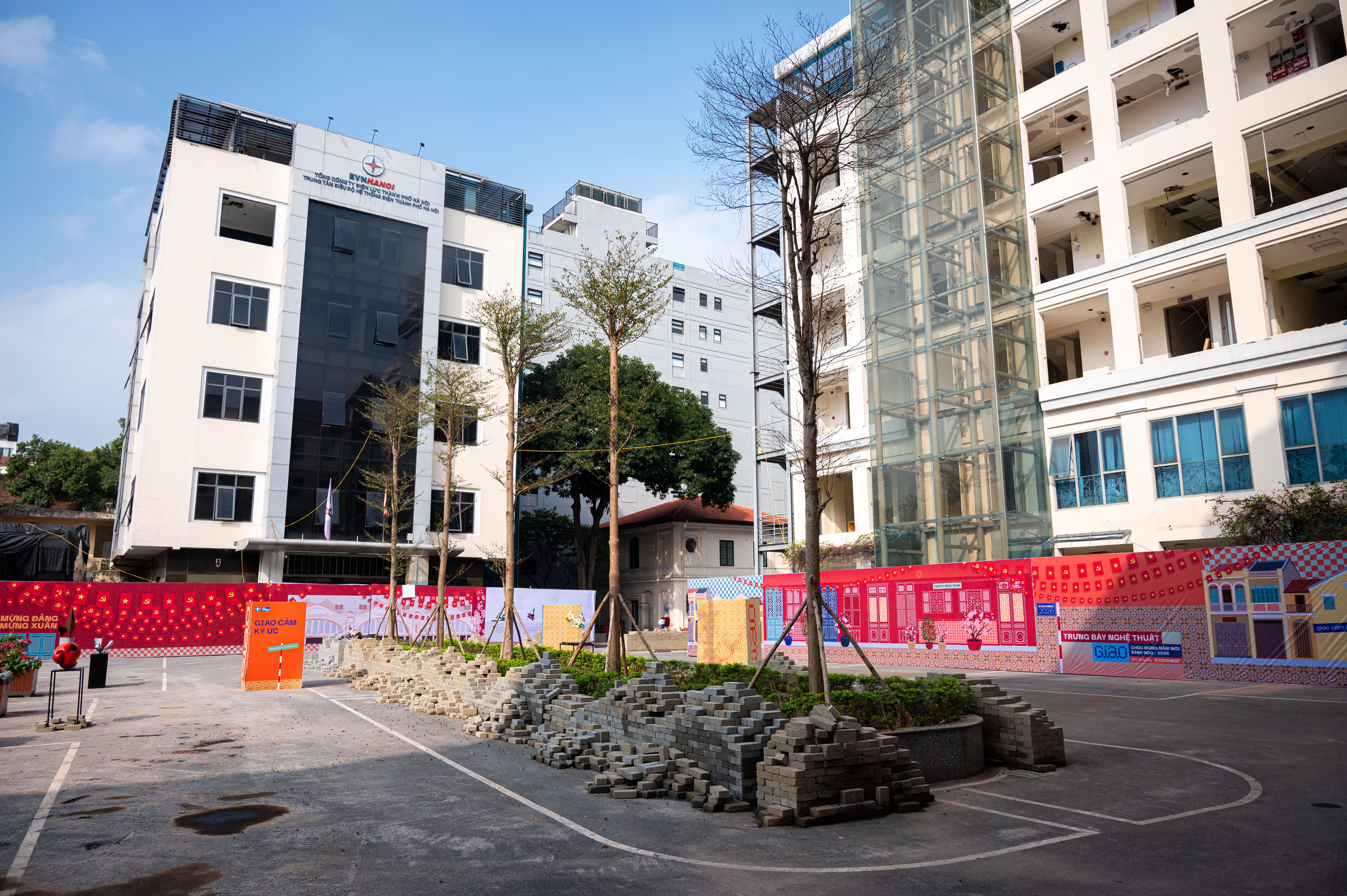Toàn cảnh khu vực hoàn trả tạm sau khi phá dỡ trước trụ sở Tổng công ty Điện lực TP Hà Nội giáp phố Đinh Tiên Hoàng, hiện khu vực này thực hiện trưng bày các tác phẩm nghệ thuật chào năm mới Bính Ngọ 2026.