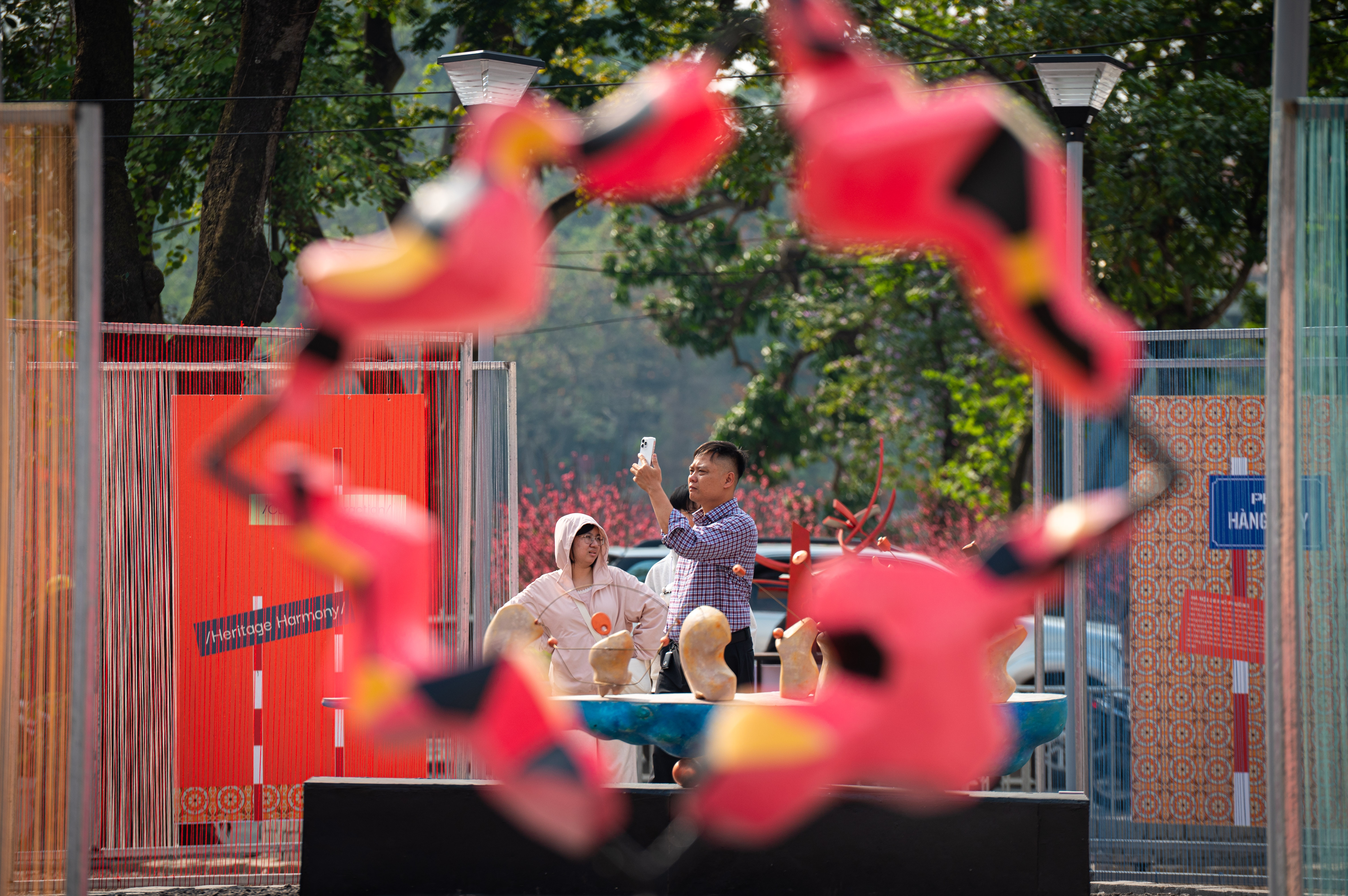 Trước đó vào ngày 12/2, UBND phường Hoàn Kiếm đã phối hợp với Khoa Thiết kế Mỹ thuật, Đại học Kiến trúc Hà Nội tổ chức trưng bày các tác phẩm điêu khắc nghệ thuật tại khu vực hoàn trả mặt bằng tạm thời sau khi phá dỡ nhằm tạo điểm nhấn về không gian văn hóa - cảnh quan, góp phần chỉnh trang đô thị khu vực trung tâm hồ Hoàn Kiếm nhân dịp Tết Nguyên Đán 2026.