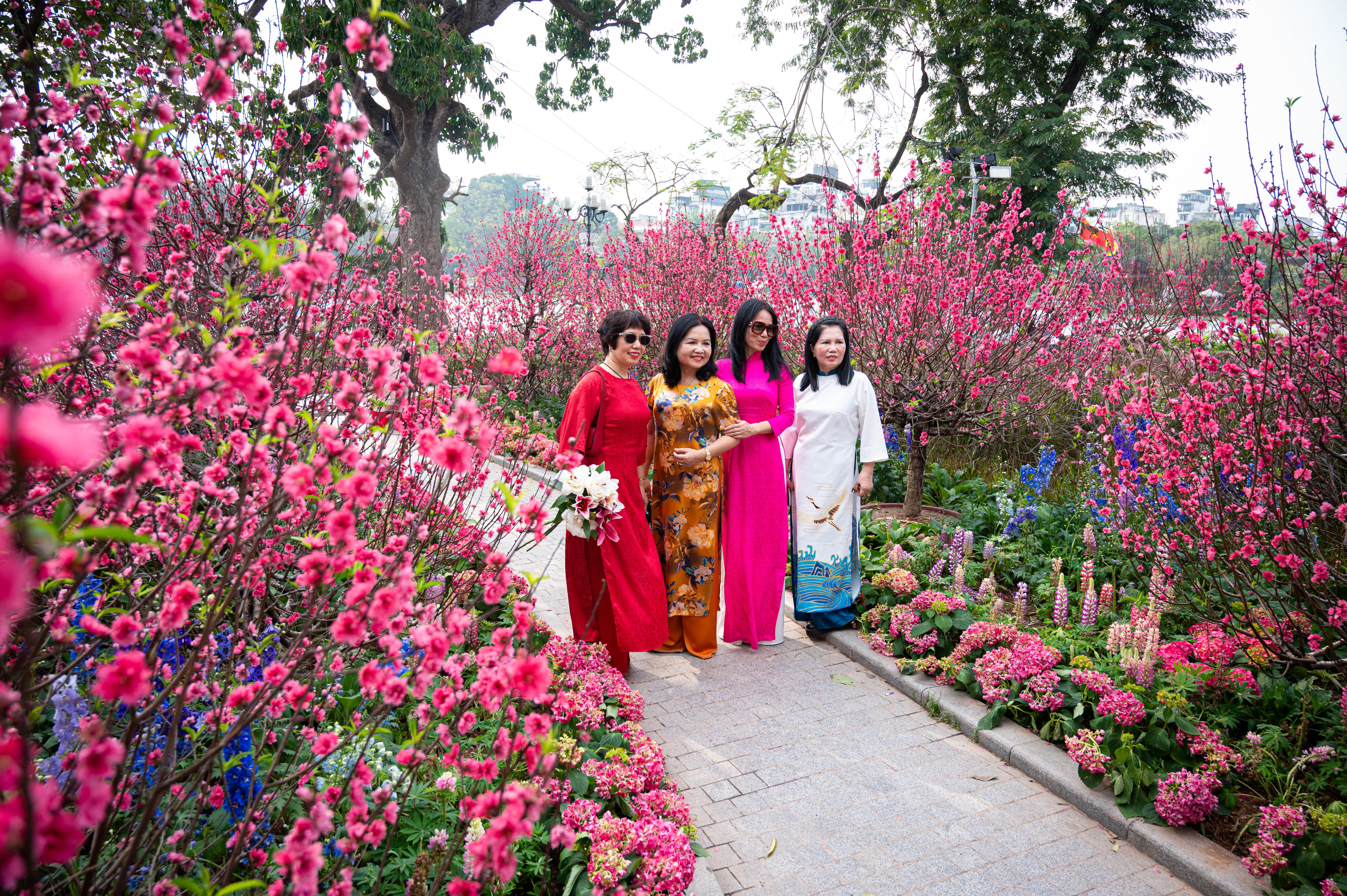 Cùng với đó, không gian hồ Hoàn Kiếm những ngày cận Tết đang được phủ sắc màu của đào, quất và các loài hoa để chào mừng Tết Bính Ngọ 2026, thu hút đông đảo khách du lịch và người dân tới chụp ảnh và check-in.