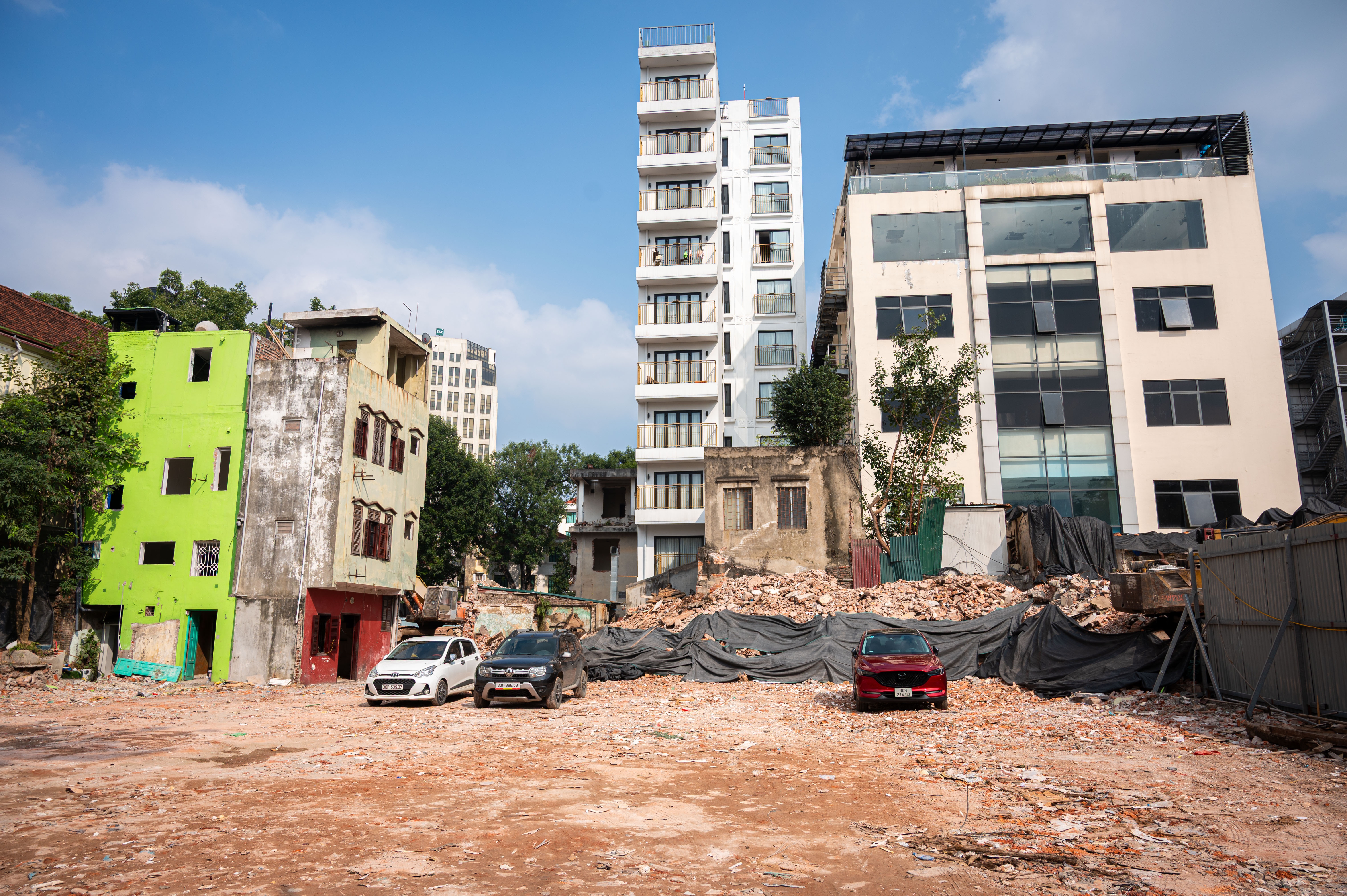 Không gian ngõ 61 Đinh Tiên Hoàng sau khi giải phóng mặt bằng và phá dỡ phần lớn các tòa nhà. Hiện khu vực này vẫn quây rào, là nơi để xe tạm của một số hộ dân lân cận.