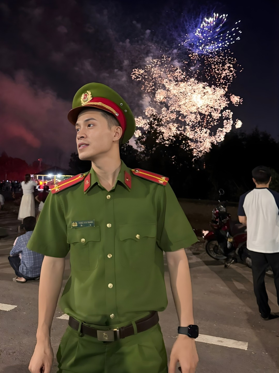 Kỷ niệm khiến Thành nhớ nhất là đêm Giao thừa năm đầu tiên ra trường. Khi đang làm nhiệm vụ tại điểm bắn pháo hoa, giữa lúc chạnh lòng vì nhớ nhà, một em bé bất ngờ nắm tay anh, tặng một viên kẹo và chúc mừng năm mới. "Lúc đó, tự nhiên thấy mình không còn buồn nữa", Thành chia sẻ.