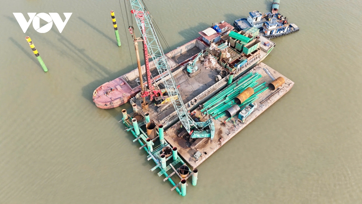 Hiện nay, các nhà thầu đã bố trí mỗi đơn vị từ 1–2 mũi thi công tại các trụ chính giữa sông. Hàng trăm kỹ sư, cán bộ kỹ thuật, công nhân và thợ vận hành làm việc liên tục theo 3 ca, 4 kíp, duy trì tiến độ xuyên suốt dịp Tết.