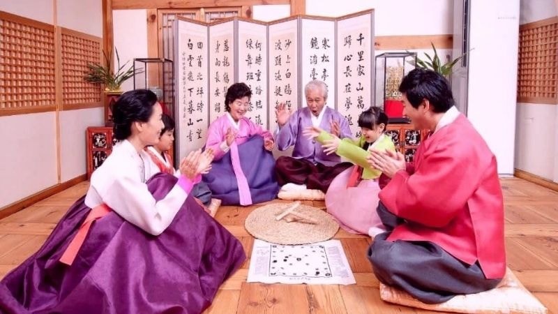 Tại xứ sở kim chi Hàn Quốc, Tết Nguyên Đán được gọi là Seollal, một trong những kỳ nghỉ lễ quan trọng và dài nhất năm. Người Hàn Quốc thường mặc trang phục truyền thống Hanbok để thực hiện các nghi lễ bái lạy người lớn tuổi trong gia đình.