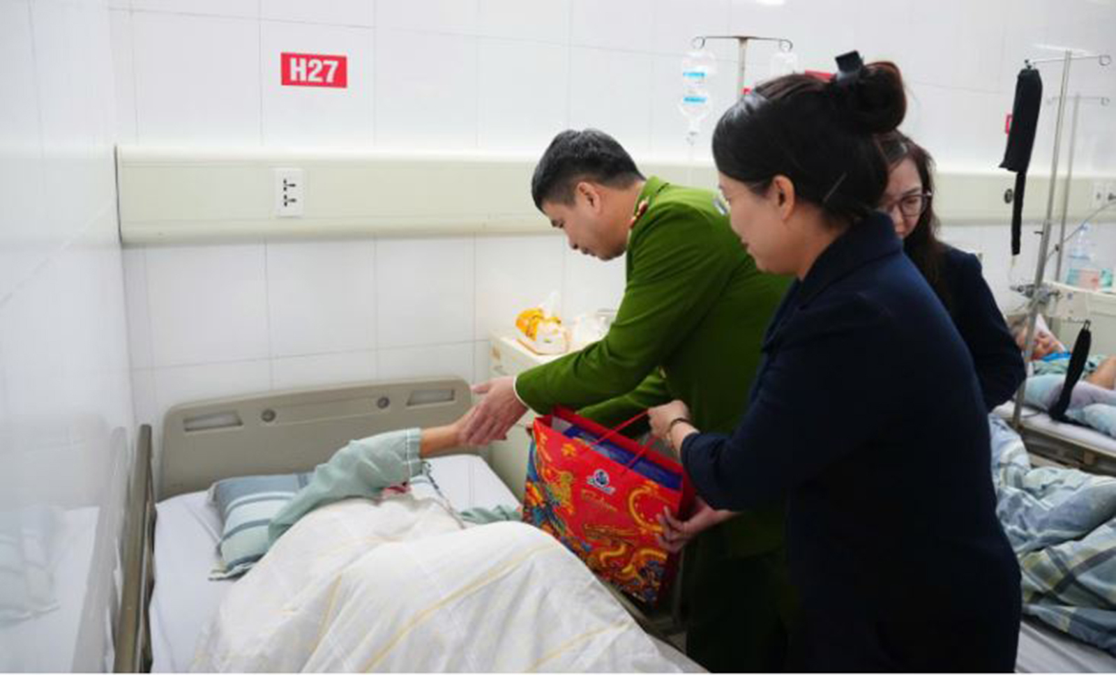 Ông chậm rãi đưa đôi tay gầy gò đón phần quà Tết được các mạnh thường quân trao tận tay. Một chút xúc động hiện lên trên khuôn mặt ông, như muốn níu giữ cảm giác ấm áp vừa đến giữa không gian vốn chỉ quen với thuốc men và những ca điều trị nối dài.