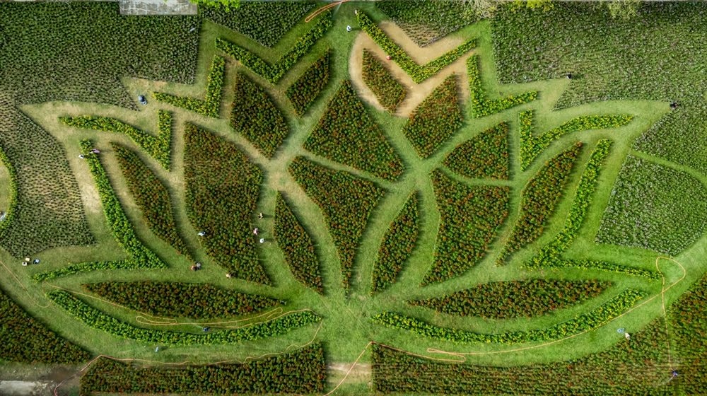 Điểm nhấn nổi bật và gây ấn tượng mạnh mẽ là hình ảnh đóa sen khổng lồ được tạo nên từ hơn 50.000 chậu hoa