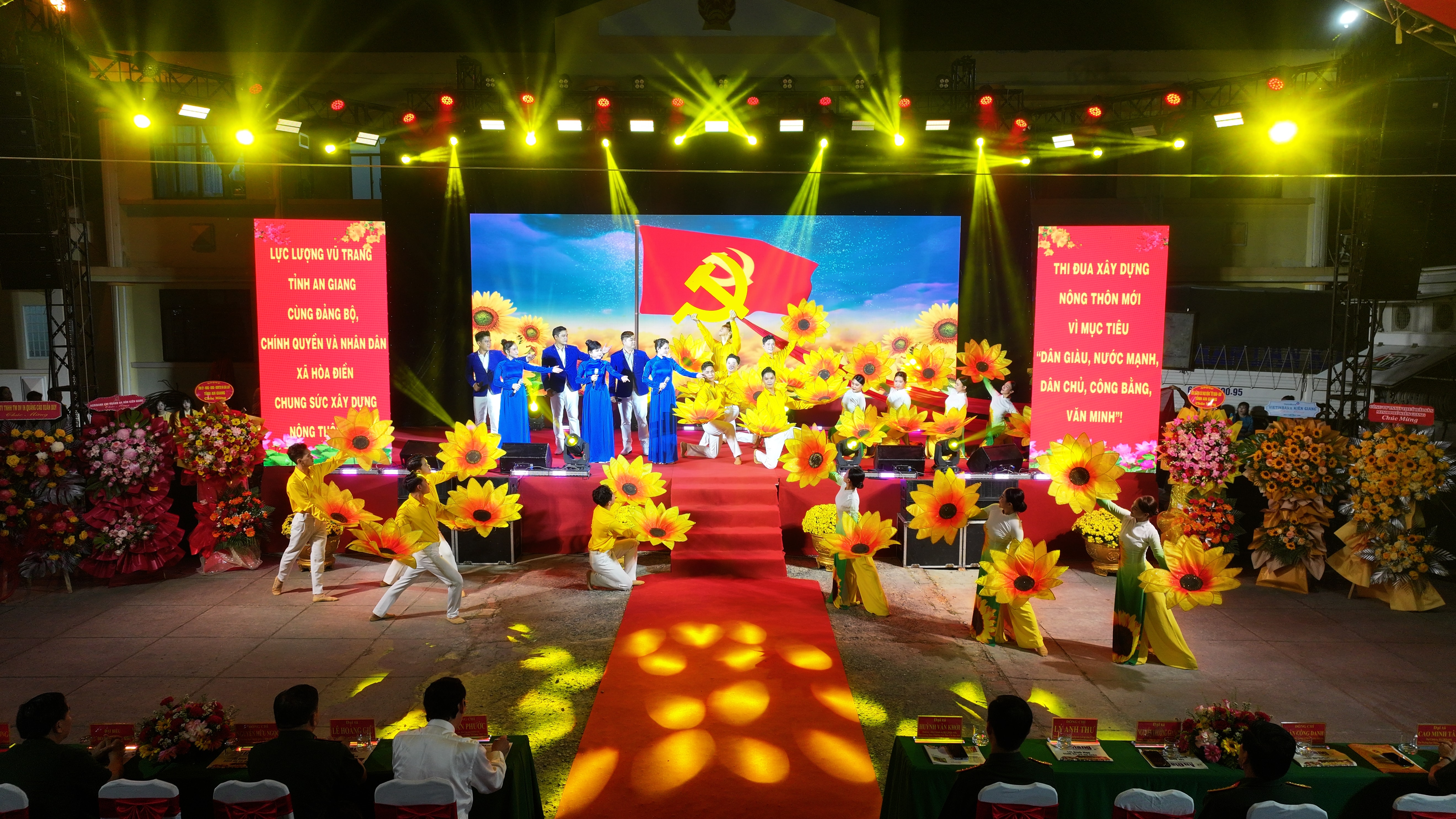 Tối 6/2, Ban chỉ đạo các hoạt động Tết Quân - Dân tỉnh An Giang tổ chức chương trình tổng kết Tết Quân - Dân 2026 tại xã Hòa Điền. (Ảnh: Phương Vũ)