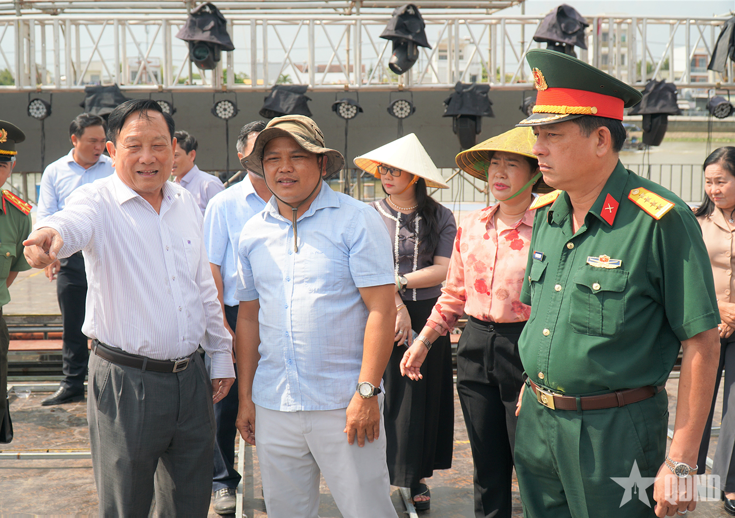 Thiếu tướng Vũ Cao Quân (ngoài cùng bên trái), nguyên Chỉ huy trưởng Bộ CHQS TP Cần Thơ, Phó chủ tịch Hội đồng quản trị Bệnh viện Đa khoa Hòa Hảo-Medic Cần Thơ khảo sát vị trí tổ chức mô hình Tết Quân-Dân năm 2026.