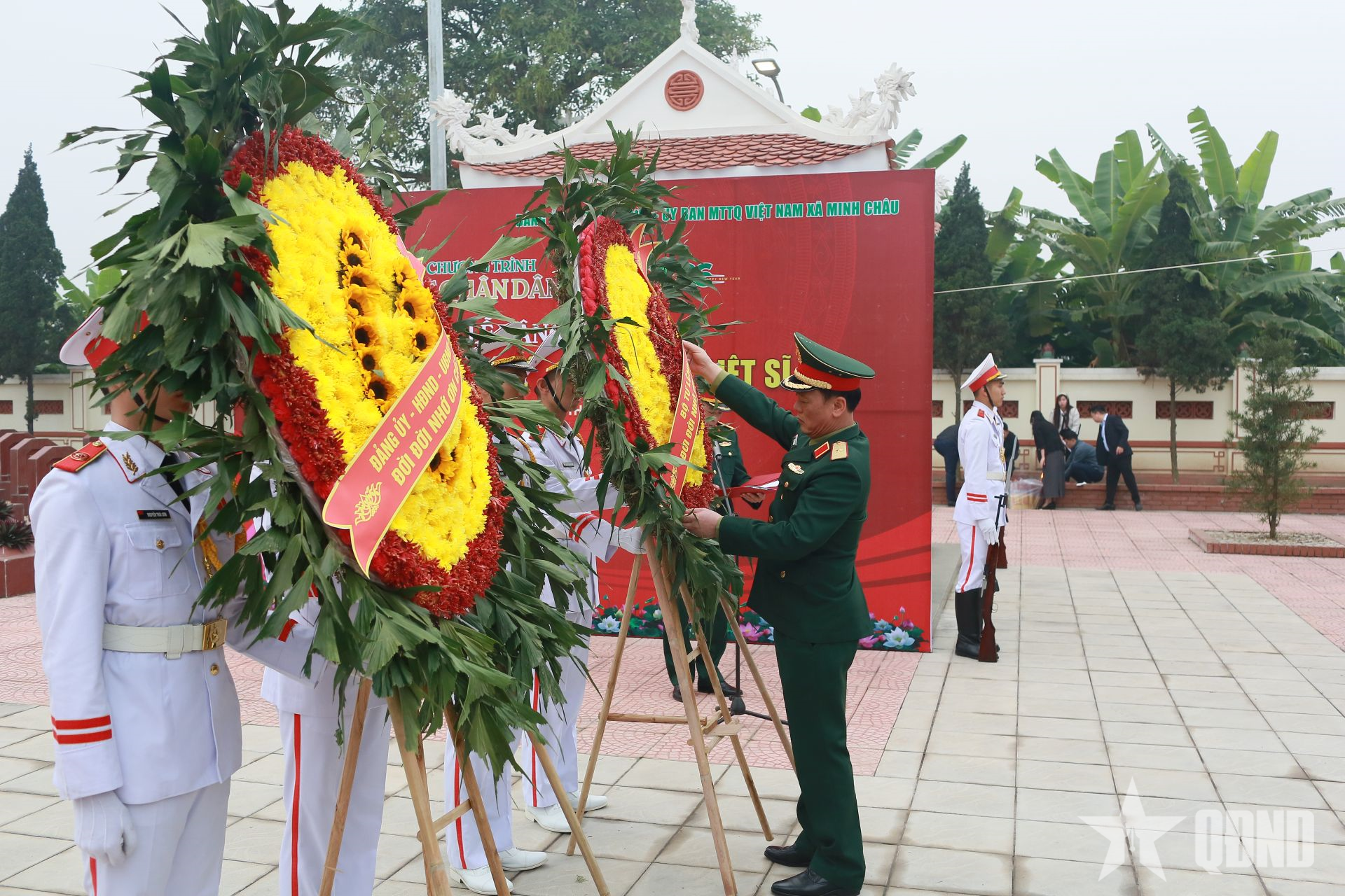 Trước đó, cán bộ, chiến sĩ Bộ tư lệnh Thủ đô Hà Nội phối hợp với nhân dân địa phương tổng vệ sinh môi trường, tu sửa Nghĩa trang Liệt sĩ xã Minh Châu.