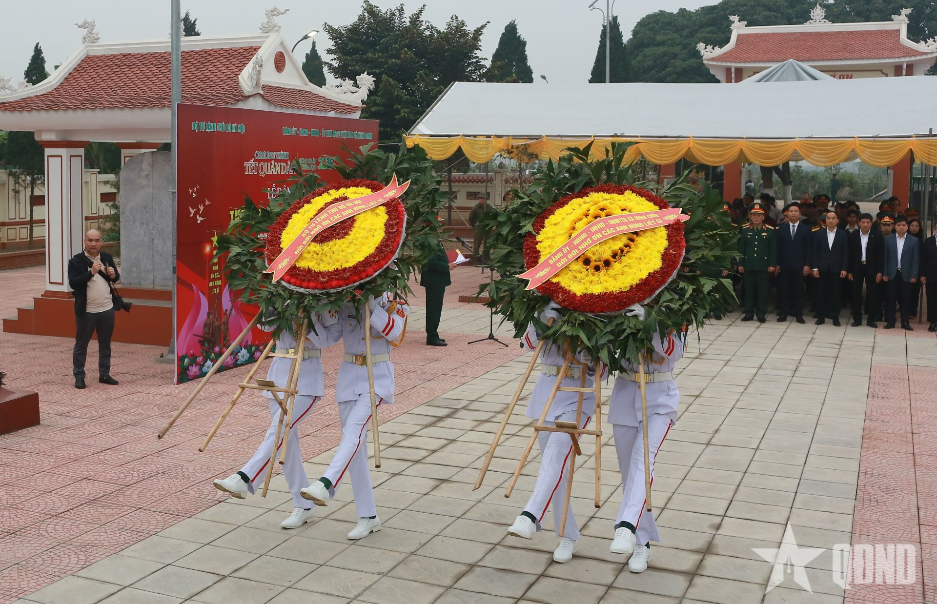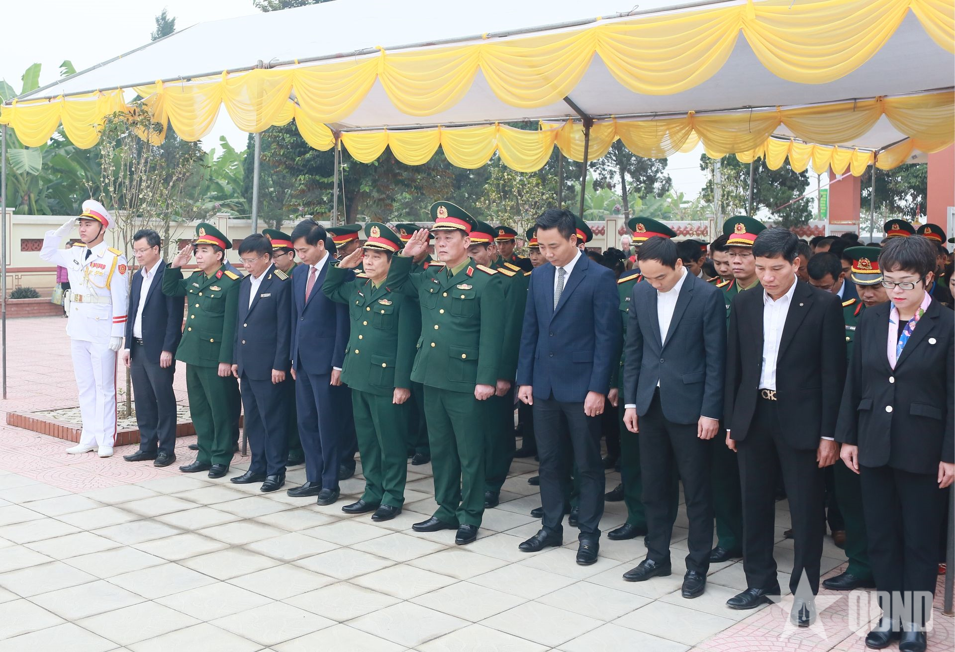 Thủ trưởng Bộ tư lệnh Thủ đô Hà Nội và các đại biểu dâng hương tại Nghĩa trang Liệt sĩ xã Minh Châu trong khuôn khổ Tết quân dân.