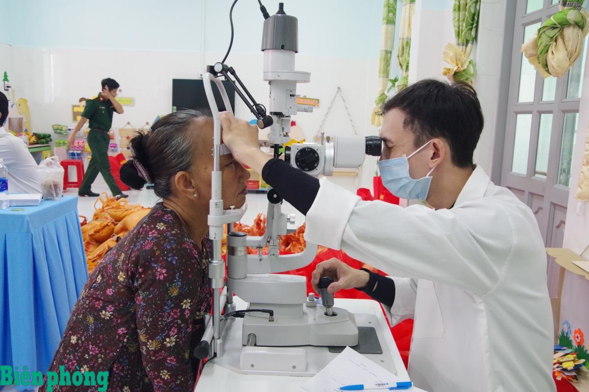 Khám mắt miễn phí cho bà con xã đảo. Ảnh: Quang Tiến
