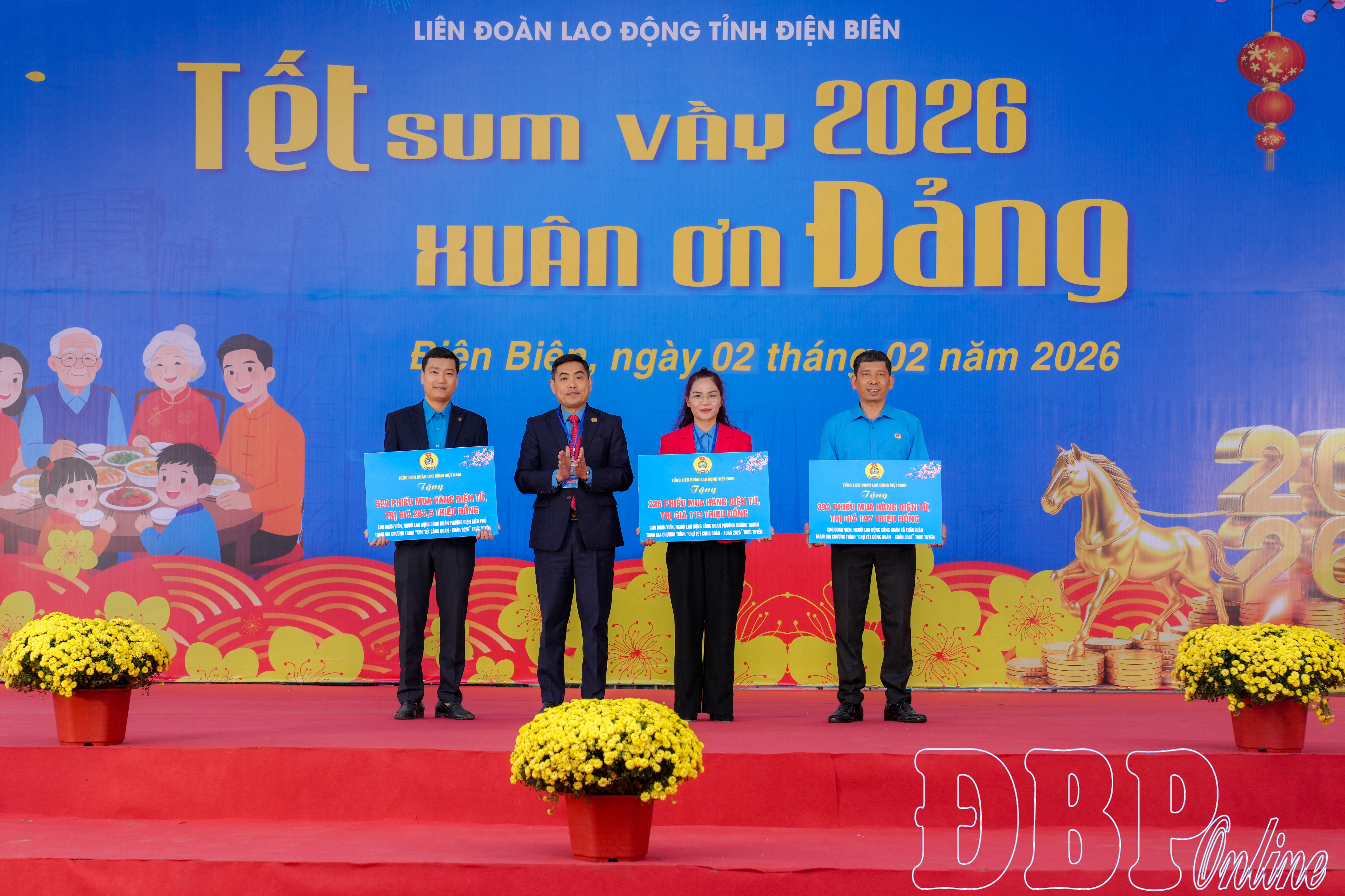 Phát biểu khai mạc chương trình, Chủ tịch LĐLĐ tỉnh Tẩn Minh Long cho biết mỗi dịp tết đến, xuân về, chương trình “Tết sum vầy” đã trở thành hoạt động mang đậm dấu ấn của tổ chức Công đoàn, thể hiện rõ tinh thần “tất cả đoàn viên, người lao động đều có Tết”, không để ai bị bỏ lại phía sau. Chương trình "Tết sum vầy - Xuân ơn Đảng" năm 2026 là chương trình mang ý nghĩa nhân văn sâu sắc, bằng những tấm lòng, sự chung tay của cộng đồng, đặc biệt là sự quan tâm của cấp ủy, chính quyền, các cơ quan, đơn vị, doanh nghiệp, tổ chức và cá nhân có tấm lòng hảo tâm đến với đoàn viên, CNVCLĐ có hoàn cảnh khó khăn, với mong muốn đóng góp một phần nhỏ bé mang Tết đến cho tất cả mọi người sum họp, đoàn tụ gia đình, bước sang năm mới Bính Ngọ 2026 tràn đầy niềm vui, hạnh phúc.
