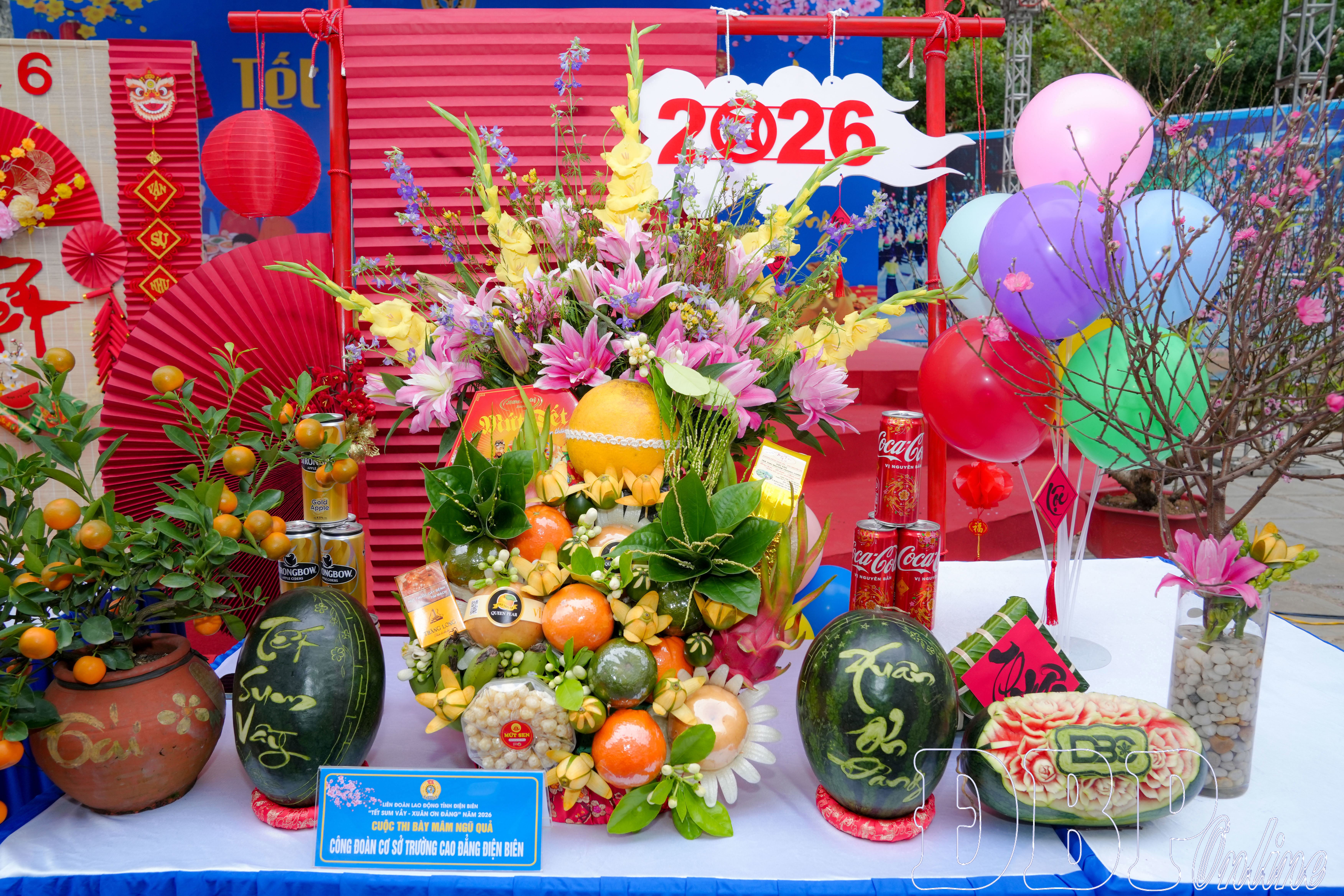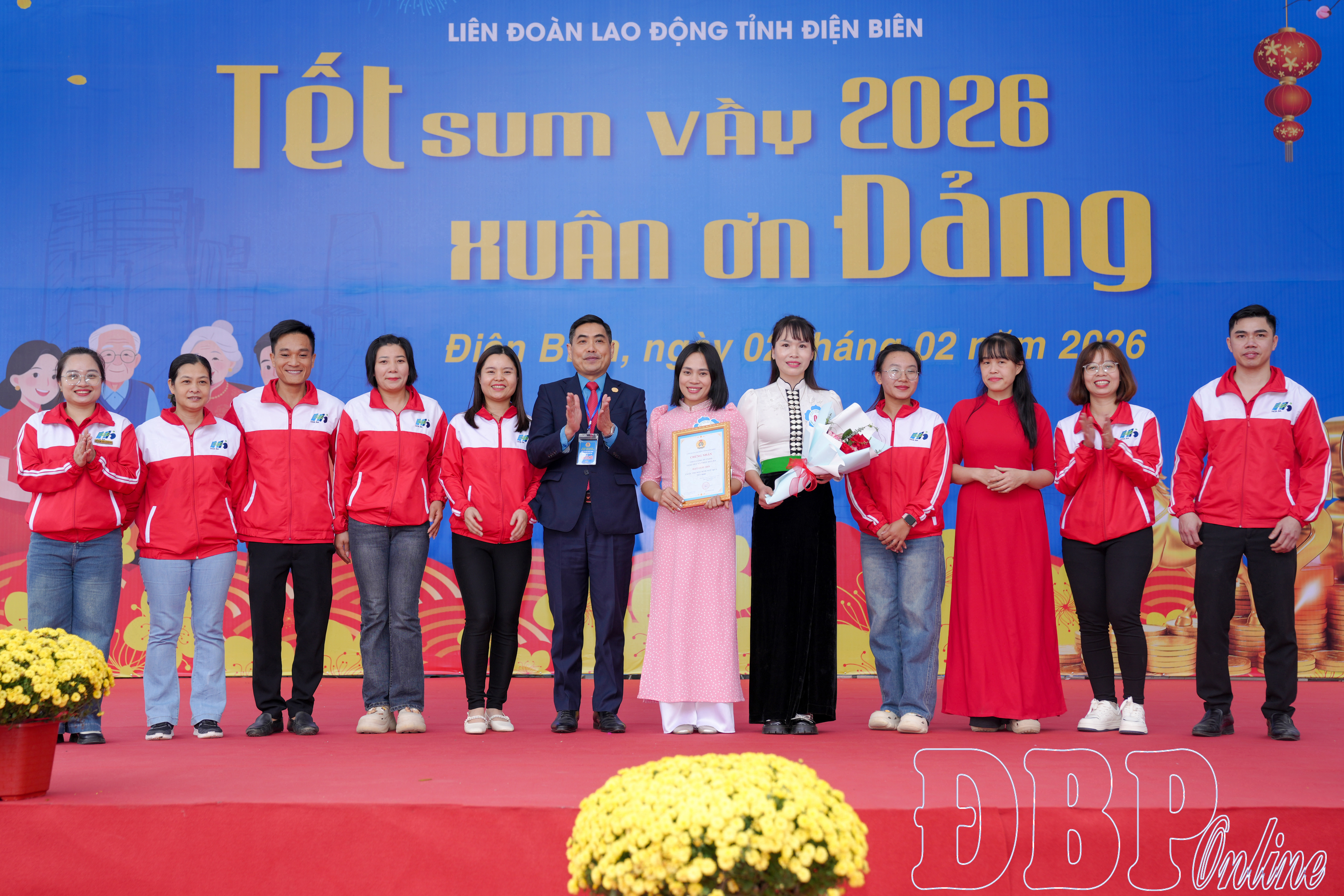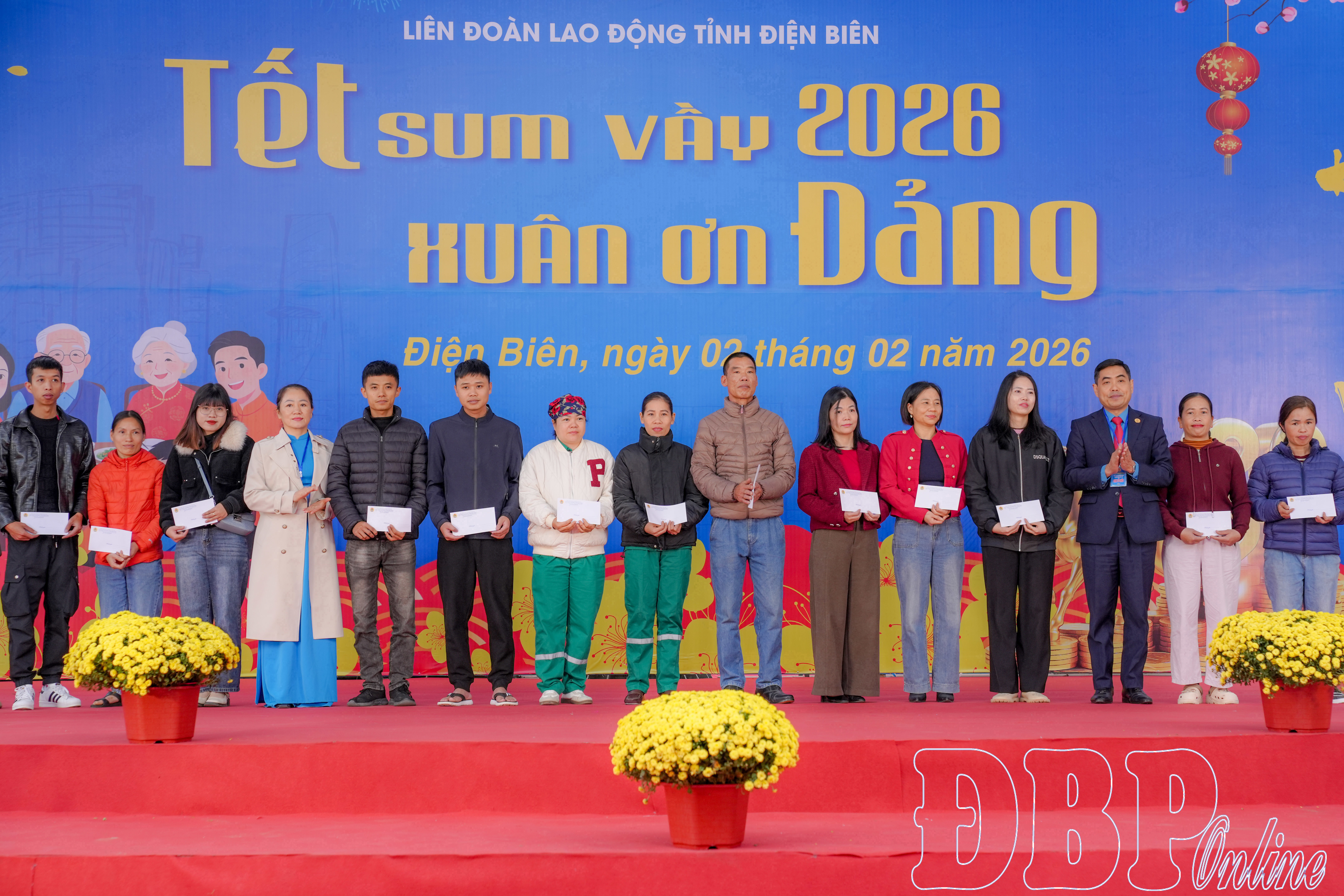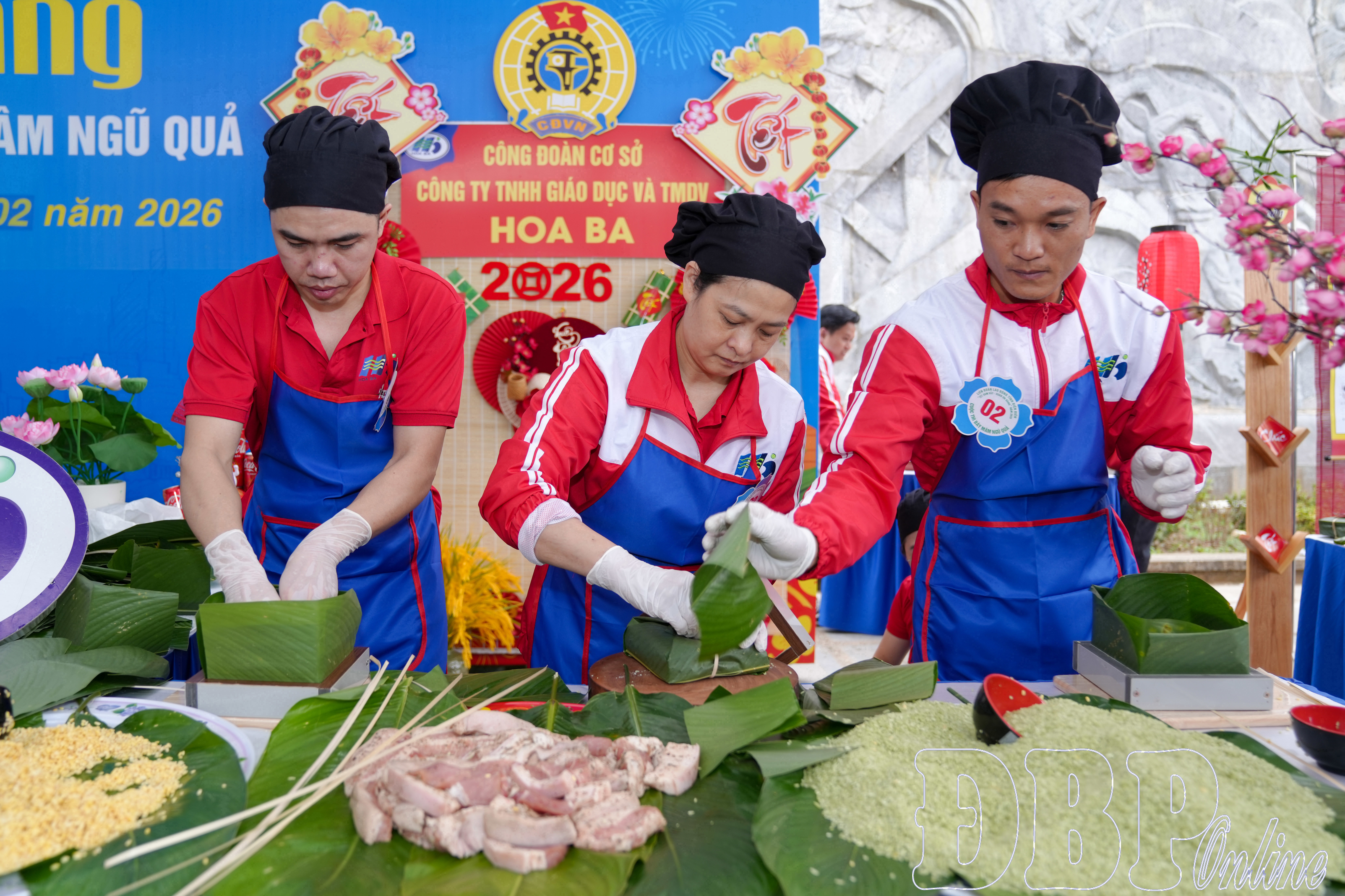 Chương trình “Tết sum vầy 2026 – Xuân ơn Đảng” sôi nổi với phần hội gồm thi gói bánh chưng chủ đề “Mừng xuân, ơn Đảng” và thi bày mâm ngũ quả ngày Tết. Chương trình thu hút sự tham gia 11 đội đến từ công đoàn cơ sở các phường Mường Thanh, Điện Biên Phủ và xã Tuần Giáo.