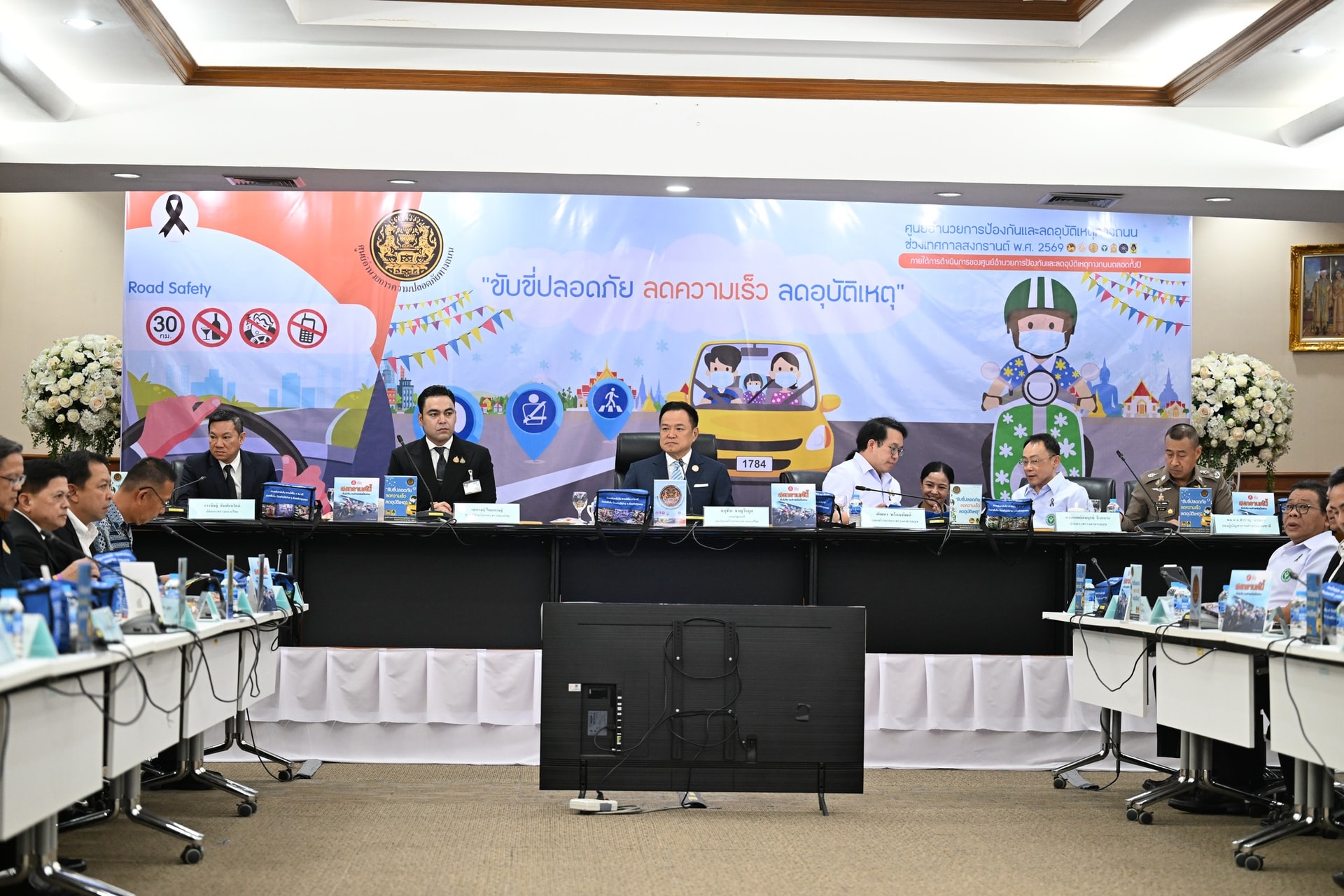 Ngày 10.4, Thủ tướng kiêm Bộ trưởng Nội vụ Thái Lan Anutin Charnvirakul (giữa) chính thức khởi động Trung tâm Điều hành An toàn cho chiến dịch “7 ngày nguy hiểm” dịp Tết té nước Songkran 2026 - Ảnh: PRD Samut Prakan