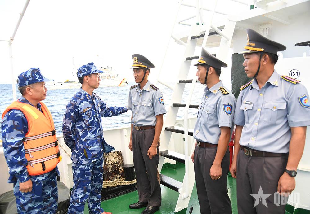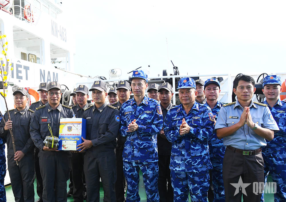Trong suốt 5 ngày hành trình vượt hơn 700 hải lý trong điều kiện thời tiết phức tạp, sóng to, gió lớn, đoàn công tác đã trực tiếp lên các tàu Cảnh sát biển, tàu dân quân thường trực và tàu kiểm ngư để kiểm tra tình hình thực hiện nhiệm vụ, thăm, động viên và trao quà Tết cho cán bộ, nhân viên.