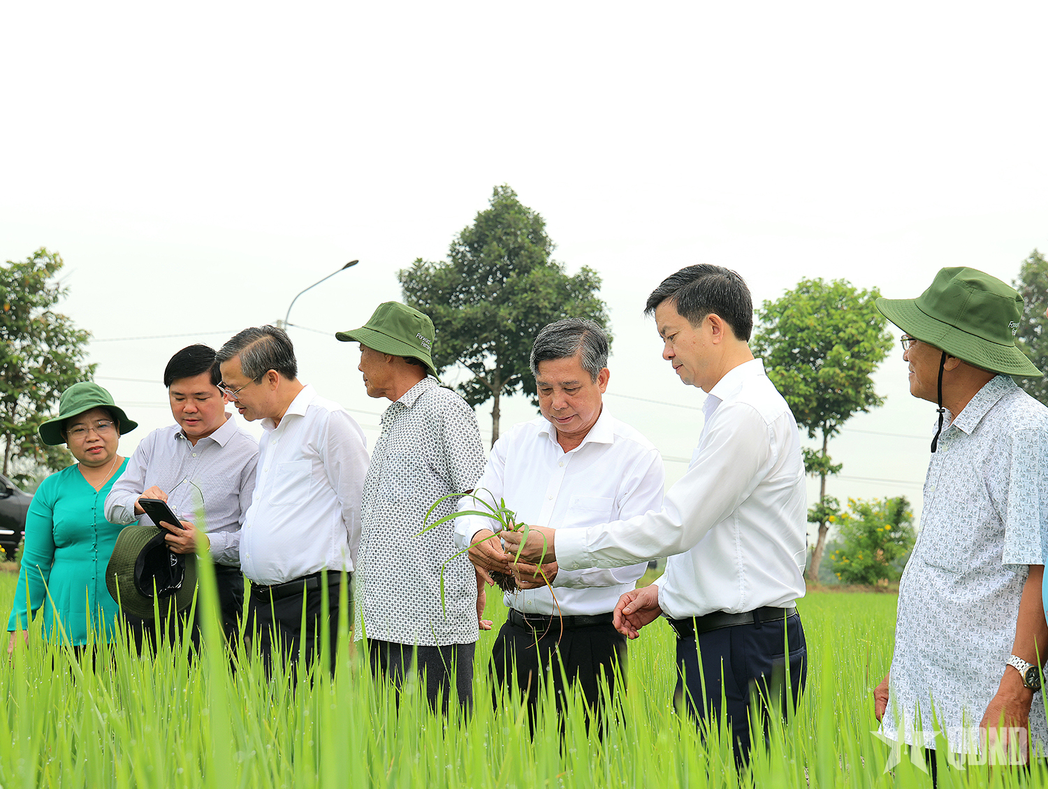 Lãnh đạo TP Cần Thơ tham quan mô hình canh tác lúa thông minh, phát thải thấp.