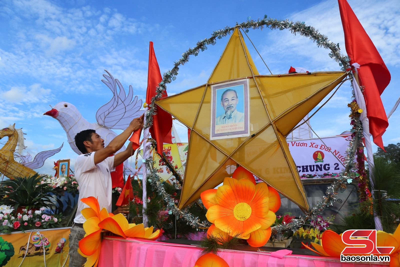 Còn tại thôn Hang Mon 1, người dân lại mang đến mô hình “Ánh sáng đoàn kết - Việt Nam vươn ra thế giới”, kết hợp tinh tế giữa nét văn hóa dân gian và yếu tố hiện đại, tạo nên một tác phẩm nghệ thuật ấn tượng và giàu ý nghĩa. Ông Trương Mạnh Vĩ, thôn Hang Mon 1, thông tin: Phần đầu xe là ngôi sao 5 cánh - biểu tượng cho những ước mơ, niềm tin và hy vọng về một tương lai tươi sáng cho trẻ thơ. Phía sau ngôi sao là mặt trăng in hình bản đồ 34 tỉnh, thành của đất nước sau khi sắp xếp, sáp nhập, cùng hình ảnh hai quần đảo Hoàng Sa và Trường Sa, thể hiện khát vọng thống nhất và toàn vẹn non sông. Phần cuối xe là đèn kéo quân và đèn lồng hình phượng hoàng, gửi gắm ước muốn về sự thịnh vượng, hạnh phúc và trường tồn, khát vọng cho một Việt Nam ngày càng phồn vinh, nhân dân ấm no, đất nước muôn đời hưng thịnh.