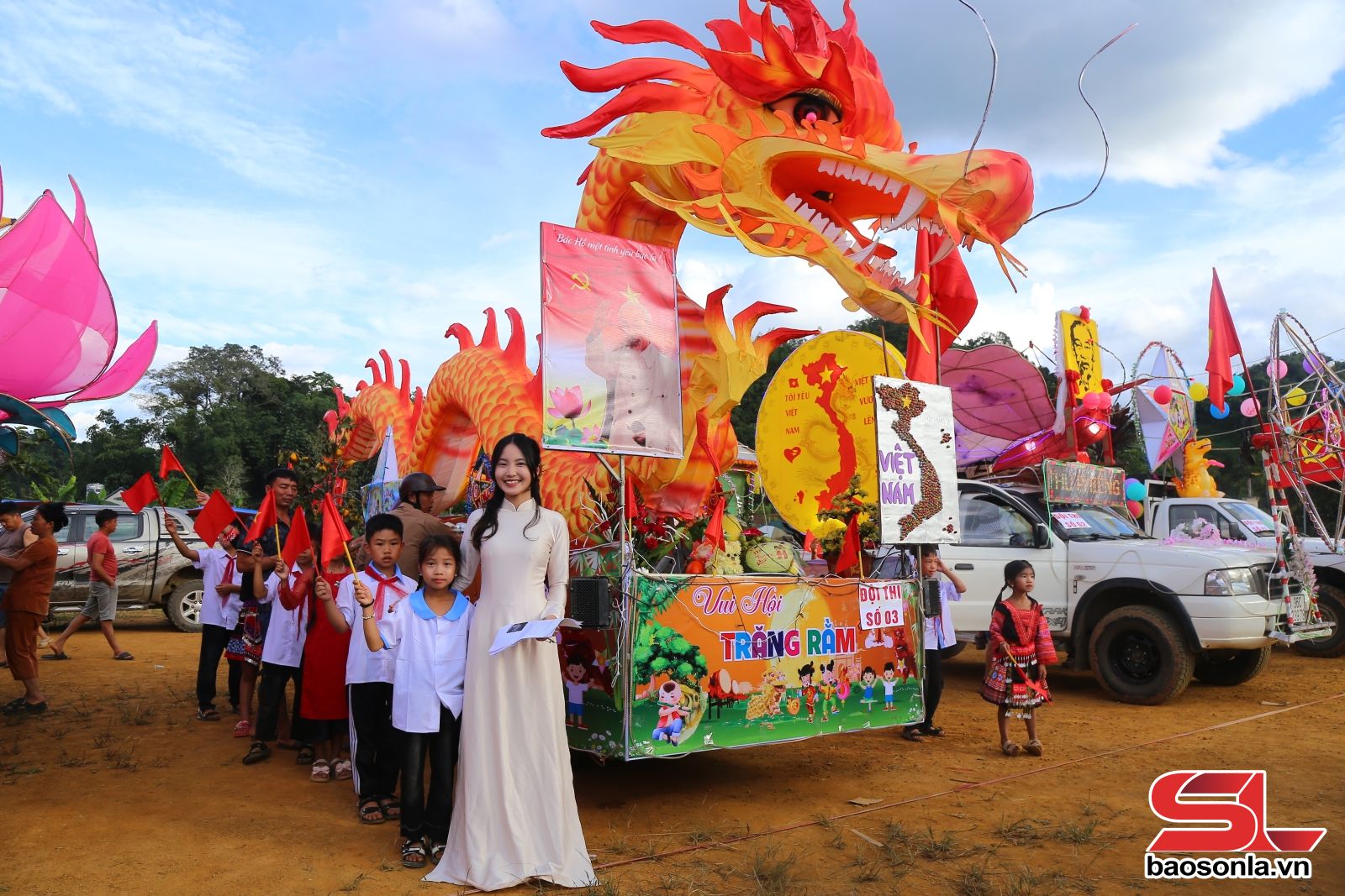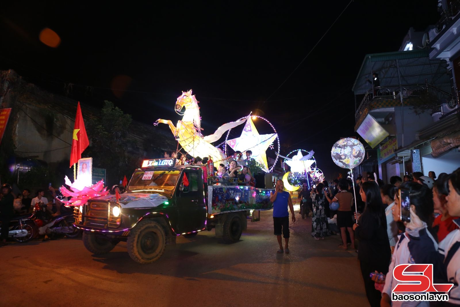 Diễu hành xe mô hình đèn trung thu tại trung tâm xã Phiêng Khoài.