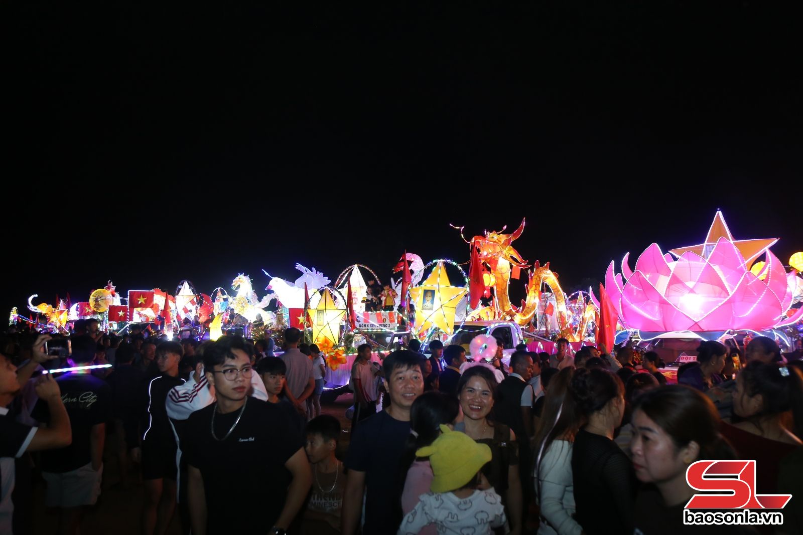 Đêm rằm tháng Tám, Phiêng Khoài rực rỡ ánh sáng, lung linh sắc màu của hàng trăm mô hình đèn Trung thu khổng lồ. Tiếng trống hội, tiếng reo vui và nụ cười rộn rã của hàng nghìn người dân, du khách đã tạo nên một bức tranh lễ hội sôi động, ấm áp tình người. Từ khắp các thôn, bản, thậm chí cả những xã lân cận như Yên Sơn, Lóng Phiêng, các mô hình đèn Trung thu với đủ màu sắc, hình dáng, kích cỡ cũng hội tụ về đây, thắp sáng đêm hội biên cương.