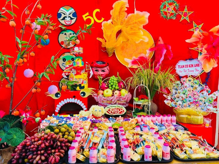 Mâm cỗ Trung thu của lớp 5C Trường Tiểu học Liên Hà - Ô Diên. Ảnh: Trường Tiểu học Liên Hà - Ô Diên