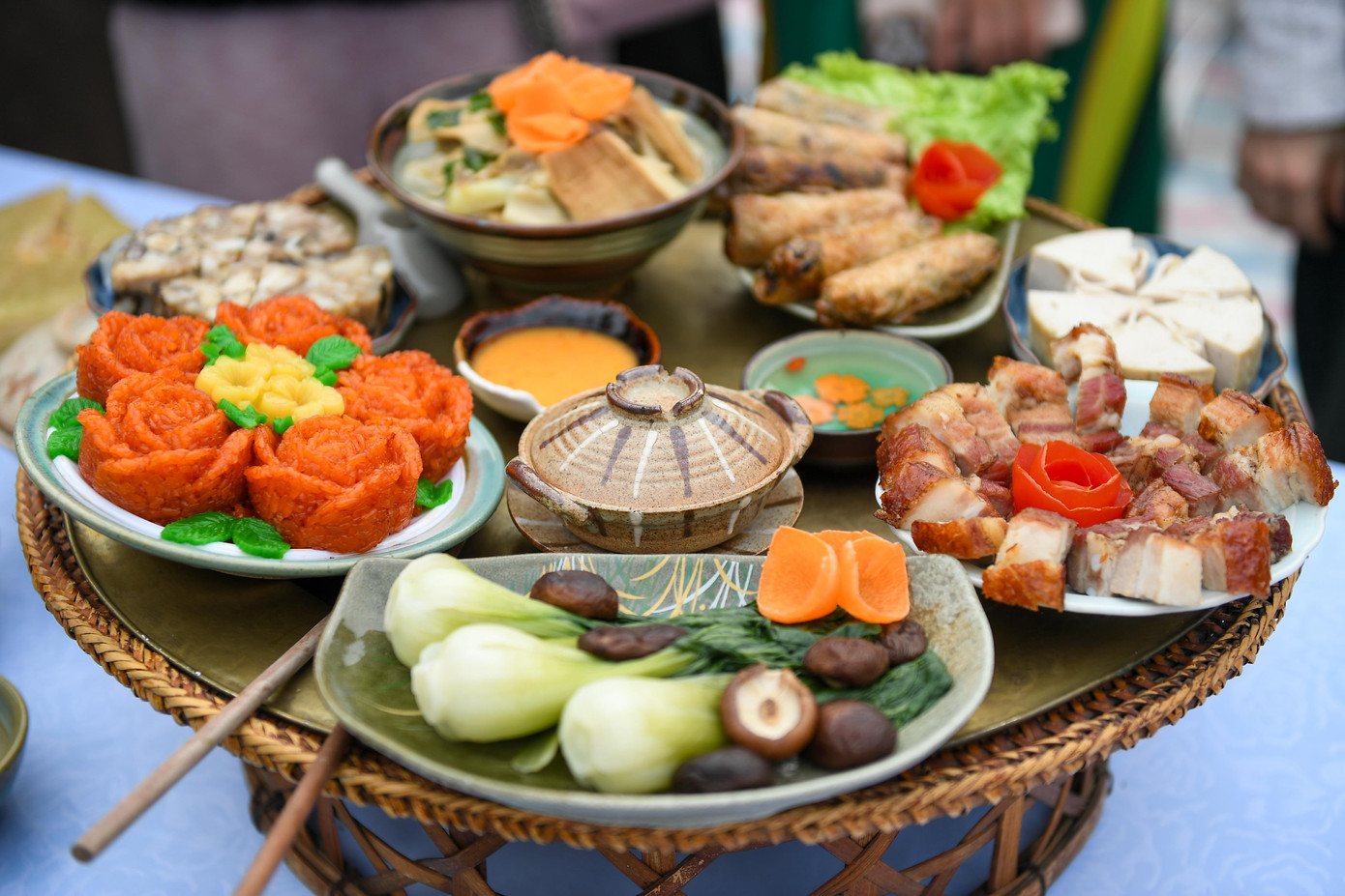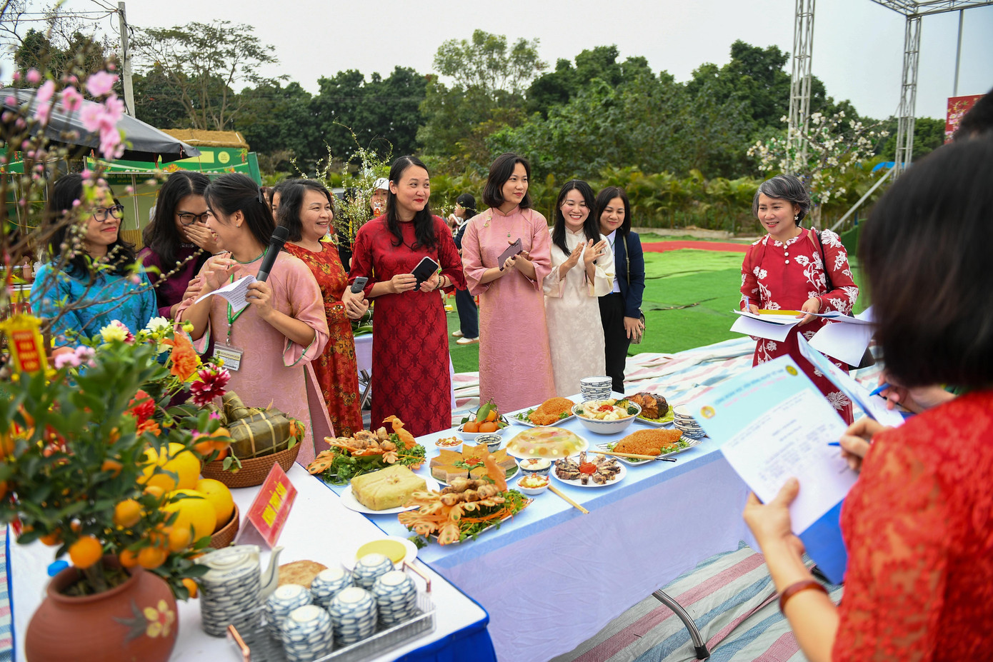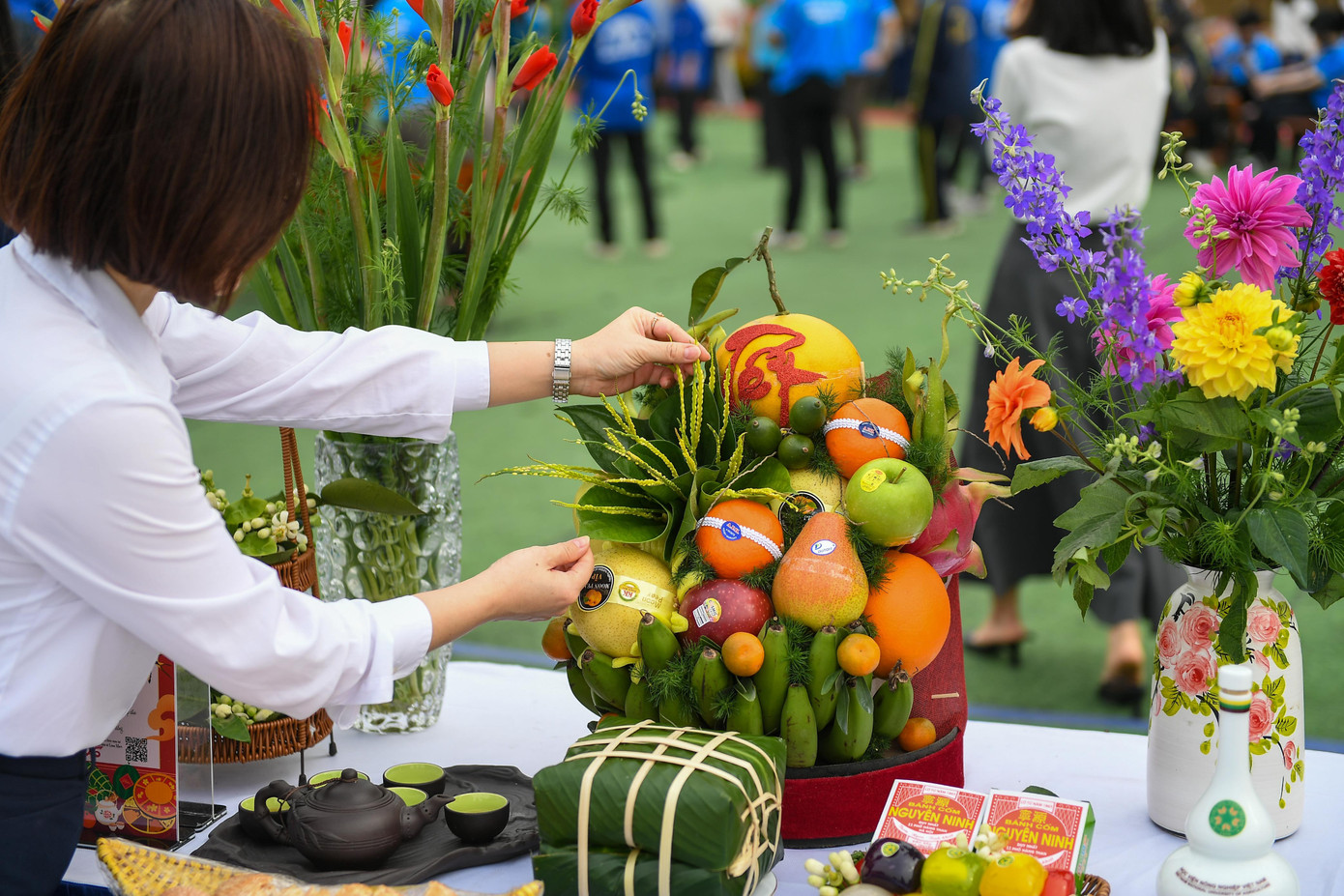 Điểm nhấn của chương trình là Hội thi gói nấu bánh chưng và trưng bày mâm cỗ ẩm thực truyền thống, nơi các đơn vị mang đến những chiếc bánh chưng vuông vắn, xanh mướt cùng các mâm cỗ được chuẩn bị công phu, thể hiện sự khéo léo và tinh thần gìn giữ nét đẹp ẩm thực ngày Tết. Không ít sinh viên lần đầu được trực tiếp tham gia gói bánh, nhóm bếp, qua đó hiểu thêm về những phong tục quen thuộc trong mỗi gia đình Việt.