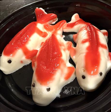 Cá chép làm từ thạch rau câu, gợi nhớ hình ảnh ngày Tết Ông Công, Ông Táo. Ảnh: Ngọc Quang/PV TTXVN tại Mỹ