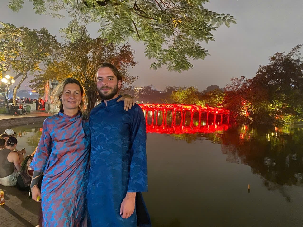 Ông Pavel Rak và bà Hana Ortmannova (Cộng hòa Séc) diện trang phục áo dài truyền thống của người Việt đón Tết Nguyên đán tại Hà Nội.