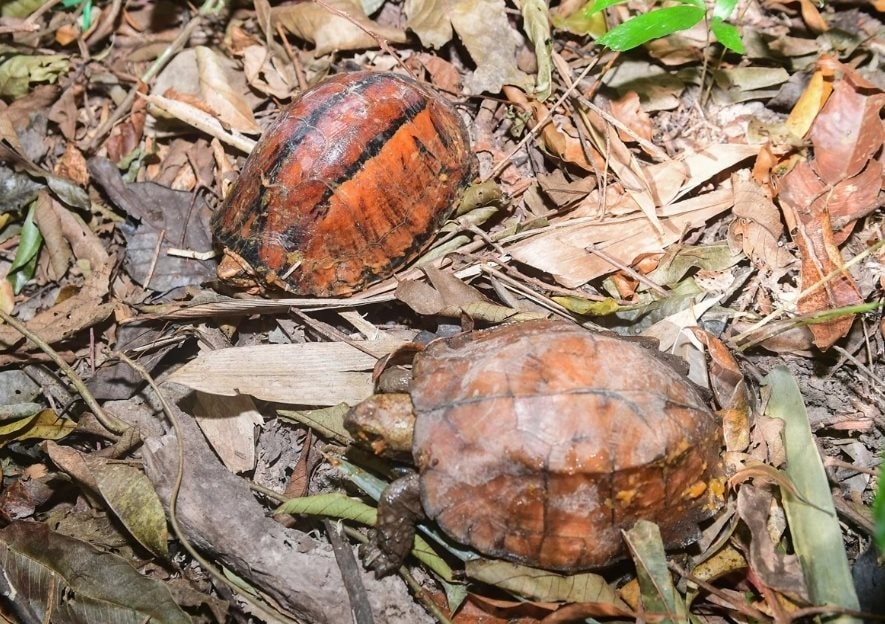 Bên cạnh đó, cá thể rùa trán vàng miền Trung có kích thước 21cm, nặng 0,8kg và cá thể rùa sa nhân kích thước 19,5cm, nặng 0,6kg, được UBND xã Mỏ Cày tiếp nhận từ người dân vào ngày 1/11/2025.
