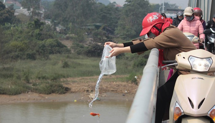 Những năm gần đây, bên cạnh hình ảnh đẹp vẫn còn không ít cảnh tượng khiến nhiều người xót xa. Cá bị thả nguyên trong túi nilon, bị ném mạnh từ trên cao xuống nước, thậm chí bị đổ xuống những nơi ô nhiễm nặng. Sau ngày cúng Táo quân, không khó để bắt gặp cá chết nổi lềnh bềnh cùng rác thải nhựa phủ kín mặt hồ.