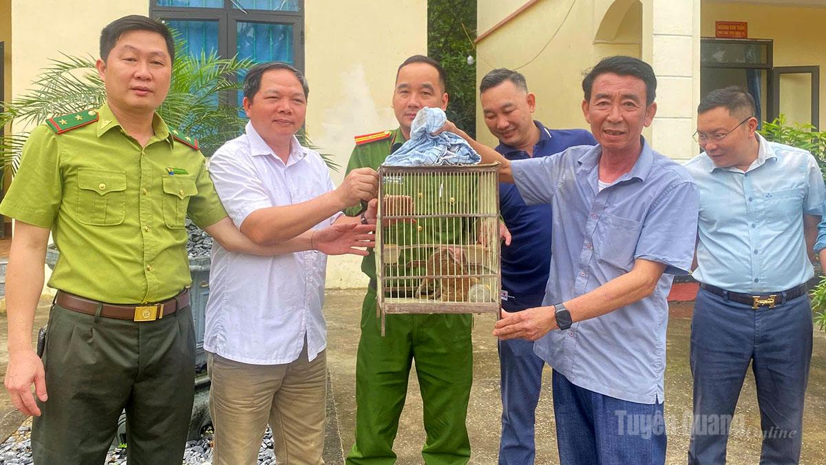 UBND xã Đồng Tâm và các ngành chức năng tiếp nhận cá thể cu li nhỏ động vật rừng nguy cấp, quý, hiếm nhóm IB.