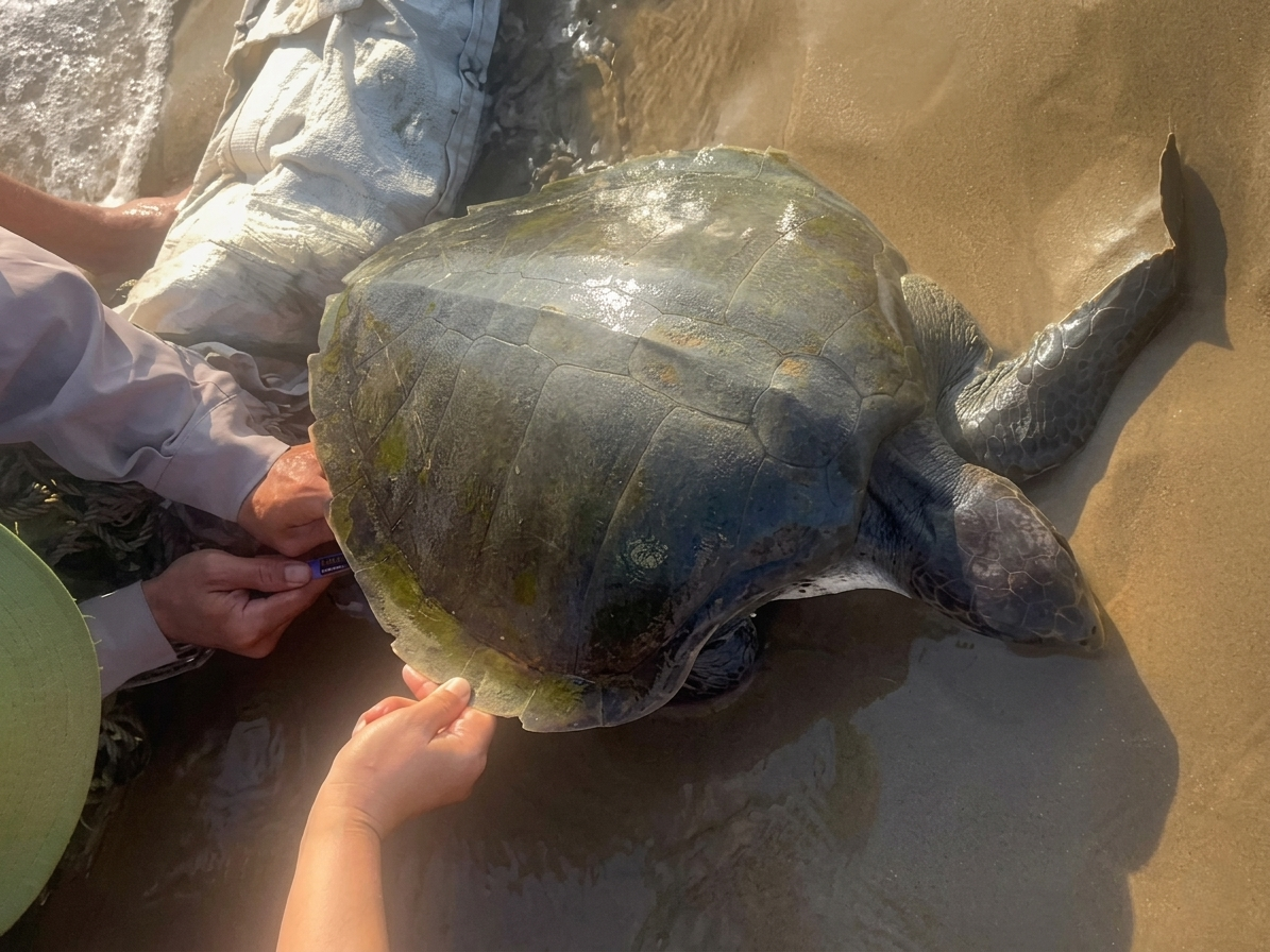 Cá thể rùa còn sống dạt vào bờ biển Mũi Né