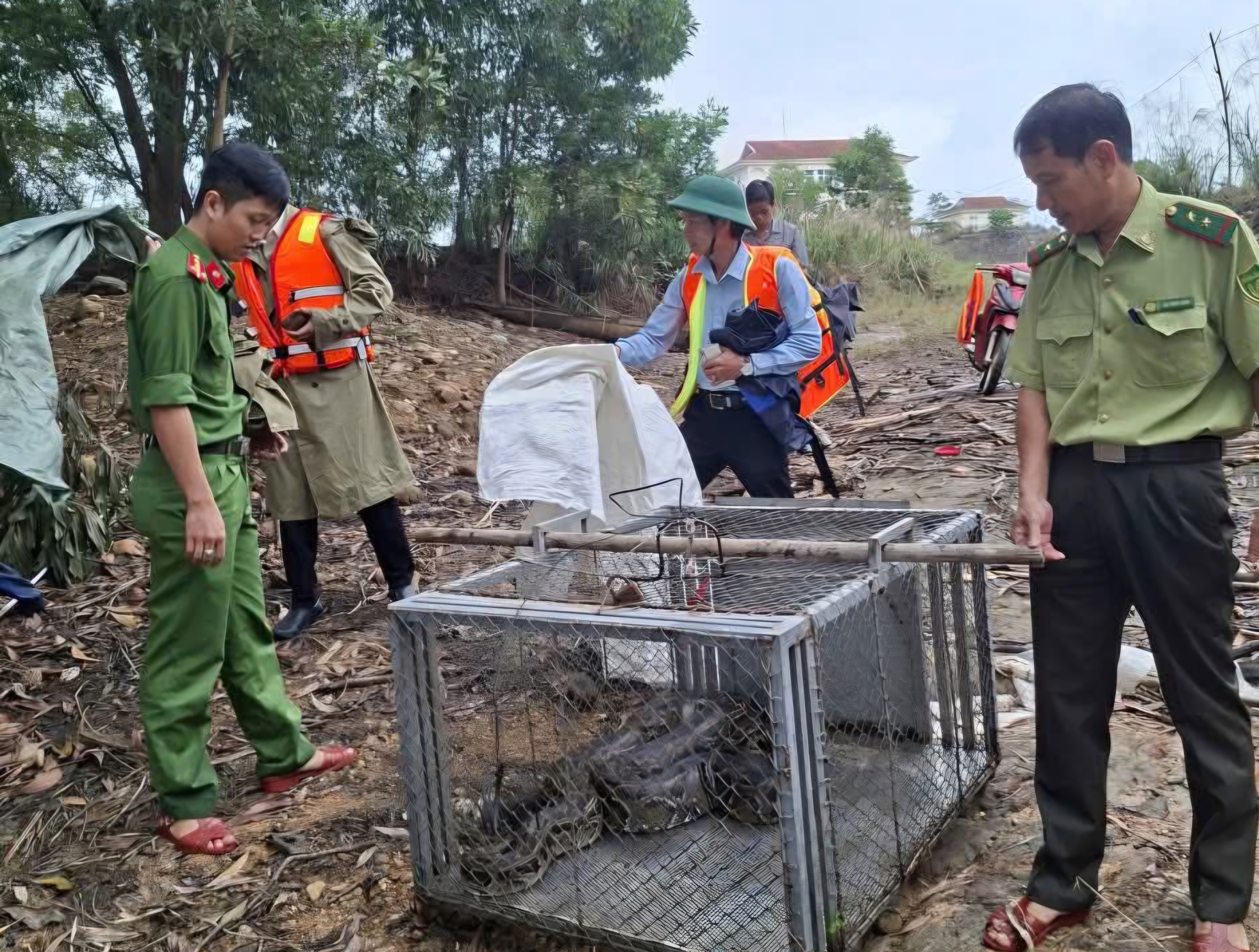 Ngày 12-11, Hạt Kiểm lâm khu vực Nam Sông Hương phối hợp với UBND phường Thanh Thủy (TP Huế) và các cơ quan chức năng tiến hành thả cá thể trăn đất (Python bivittatus) về lại rừng theo đúng quy định bảo vệ động vật hoang dã.