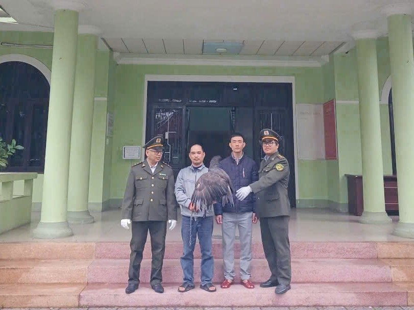 Trước đó, Chi cục Kiểm lâm TP. Huế đã tiếp nhận 01 cá thể đại bàng đen (tên khoa học Aquila clanga) do ông Trần Trọng Hồng, trú tại phường Phú Xuân tự nguyện giao nộp. Cá thể chim được bàn giao trong tình trạng sức khỏe ổn định.