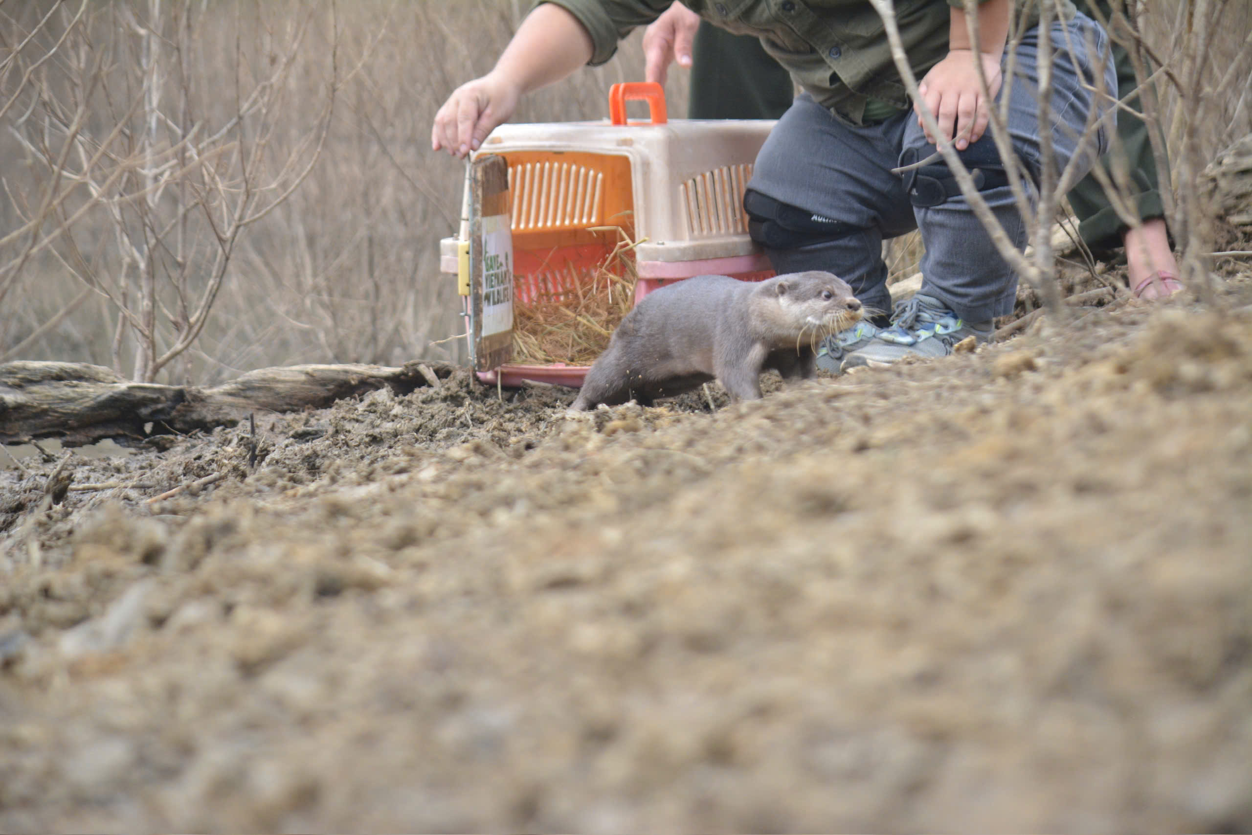 Tái thả cá thể rái cá về tự nhiên. Ảnh: TT BTĐVHD TẠI VIỆT NAM