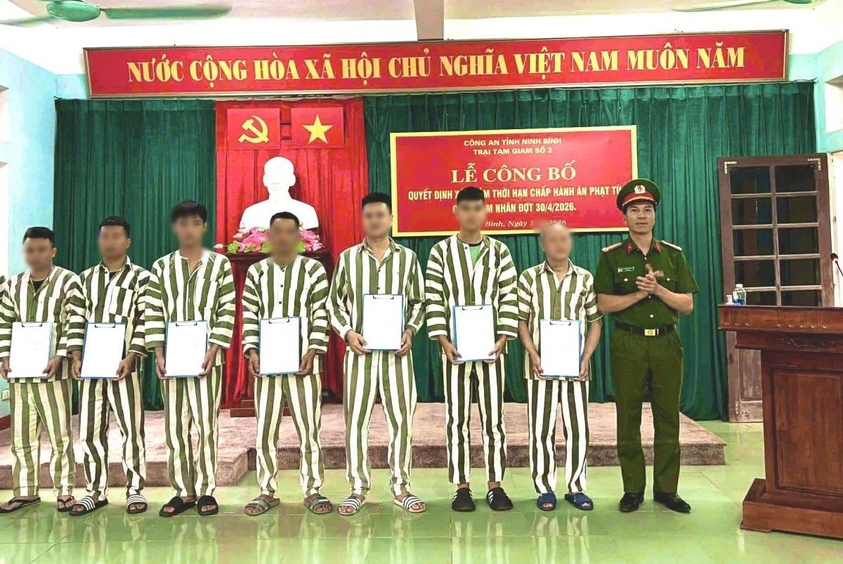 Trại Tạm giam số 2 Công an tỉnh Ninh Bình công bố Quyết định giảm thời hạn chấp hành án phạt tù cho phạm nhân đợt 30/4/2026.