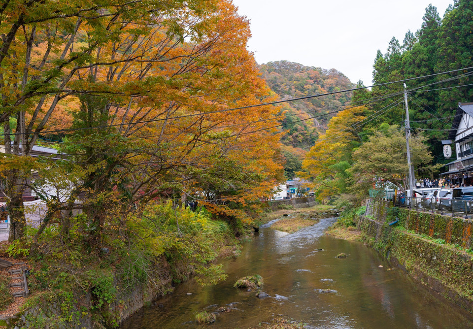 Khu vực xung quanh thác Fukurora rực rỡ sắc vàng đỏ của mùa Thu. (Ảnh: Xuân Giao/TTXVN)