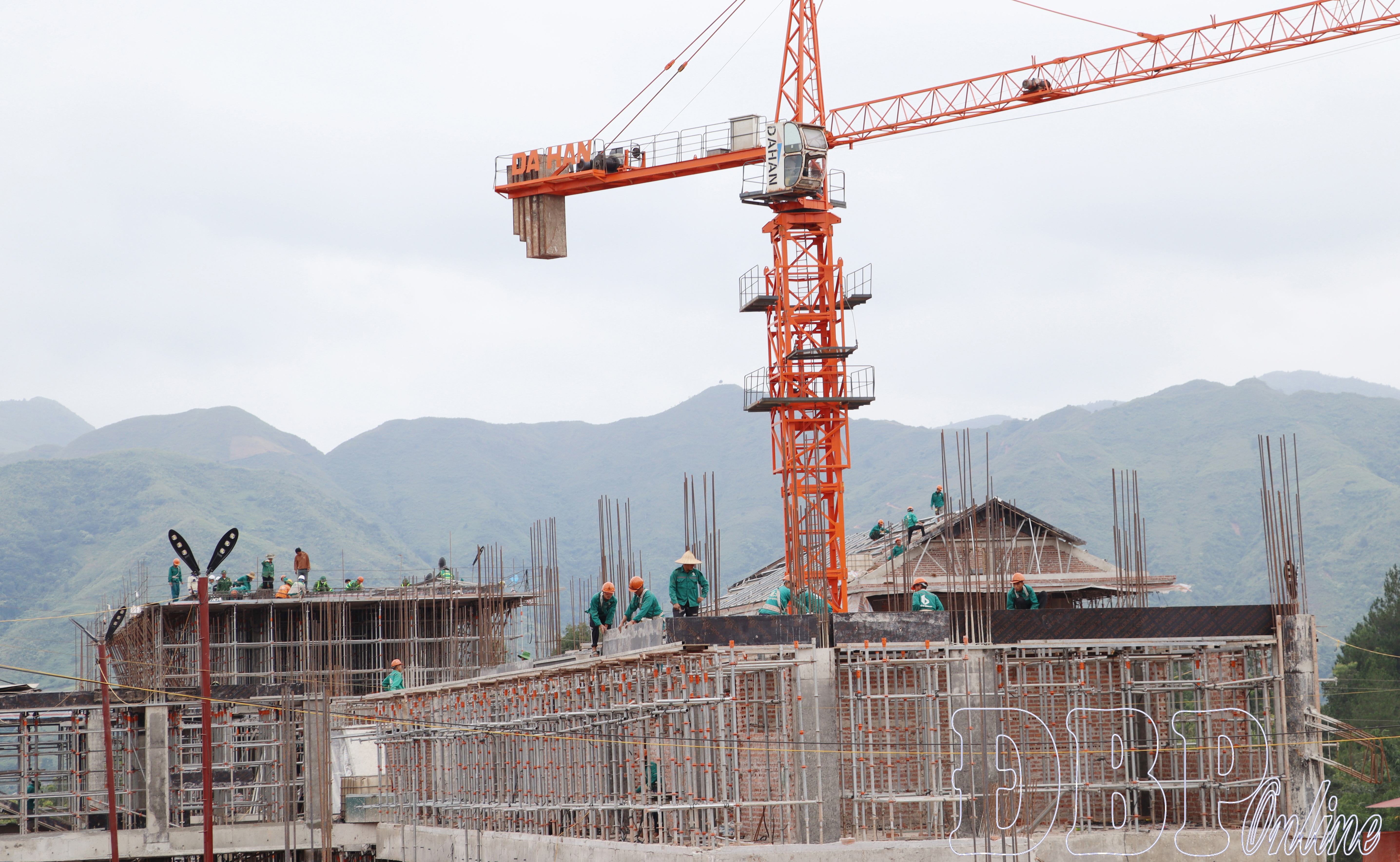 Đầu tư hoàn thiện hạ tầng góp phần tích cực giúp các xã hoàn thành các tiêu chí trong xây dựng nông thôn mới. Trong ảnh: Nhà thầu thi công công trình Trường Phổ thông liên cấp Tiểu học - THCS Si Pa Phìn.