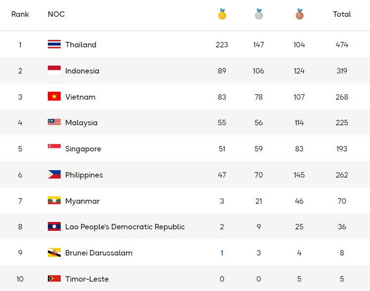 Tuy nhiên, một trong những ưu tiên lớn nhất của thể thao Thái Lan ở kỳ đại hội năm nay là gom toàn bộ 4 HCV bóng đá thì họ đã thất bại ở 3 nội dung. Với futsal nữ và bóng đá nữ 11 người, các đội tuyển của họ không thể lọt vào chung kết, trong khi bóng đá nam, nước chủ nhà thua Việt Nam cay đắng vào tối qua.
