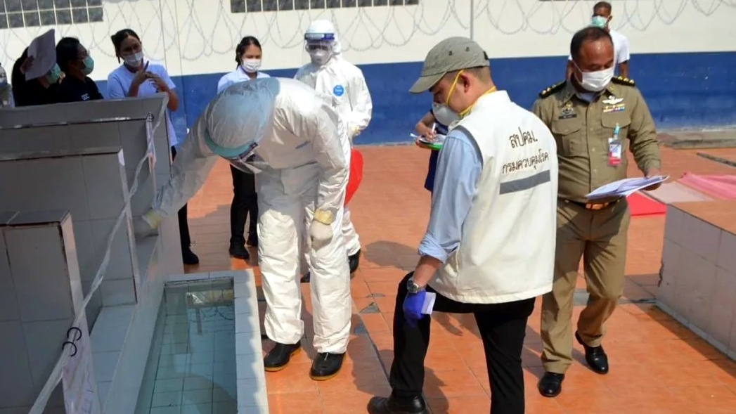 Cán bộ thuộc Cục kiểm soát dịch bệnh Thái Lan triển khai các biện pháp phòng chống dịch bệnh tại Trại tạm giam Thonburi - Ảnh: Cục kiểm soát dịch bệnh Thái Lan