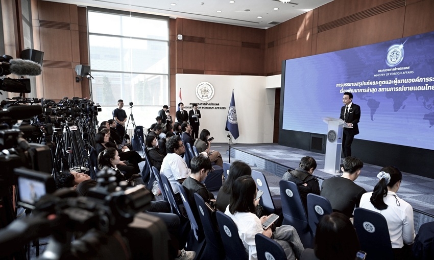 Người phát ngôn Bộ Ngoại giao Thái Lan Nikorndej Balankura trả lời họp báo chiều 31/12/2025. Ảnh: MFA Thailand