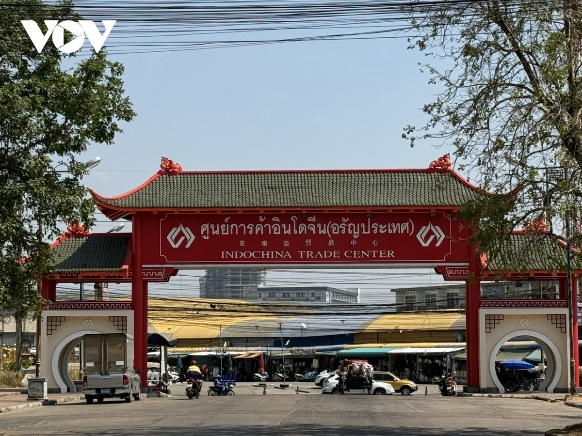 Trung tâm Thương mại Đông Dương (Indochina Trade Center) ở thị trấn Aranyaprathet, tỉnh Sakeo, giáp biên giới với Campuchia. Ảnh: VOV Bangkok