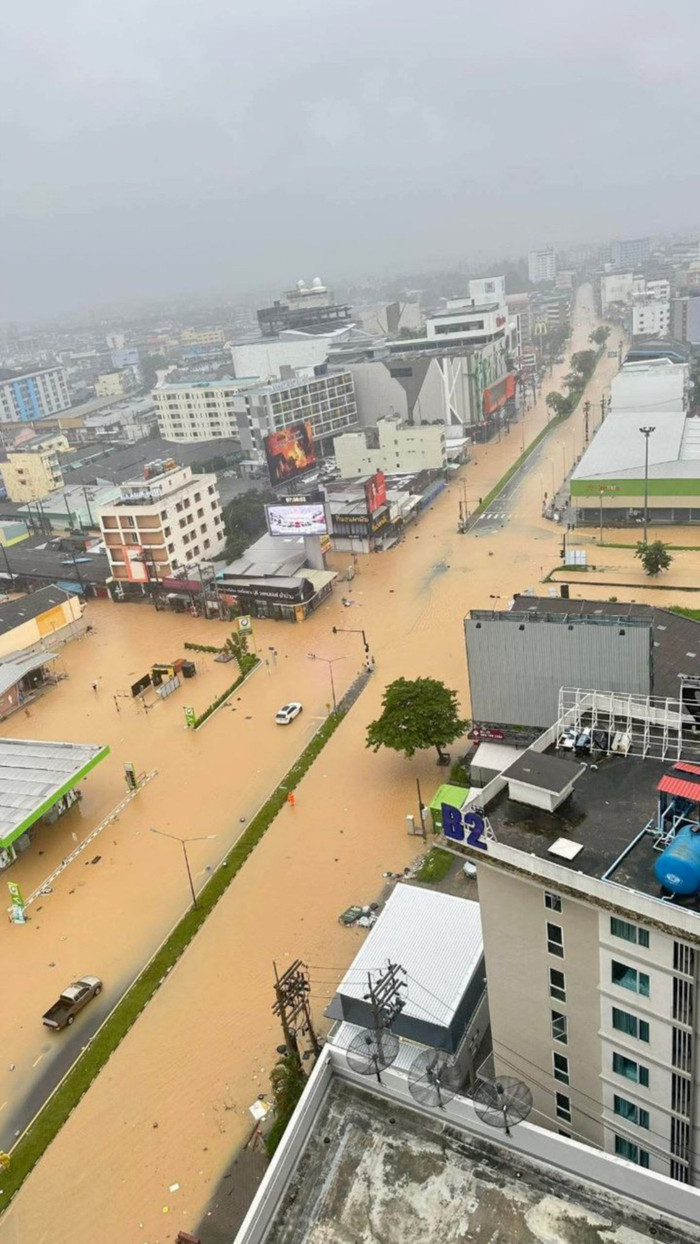 Theo thông tin từ Bangkok Post, mưa lớn không ngừng đã khiến mực nước dâng cao, cắt đứt các tuyến giao thông huyết mạch nối giữa thành phố và các vùng lân cận. Nhiều khách sạn bị cô lập hoàn toàn, khiến khoảng 1.000 du khách mắc kẹt, không thể di chuyển đến nơi an toàn hoặc trở về nhà.