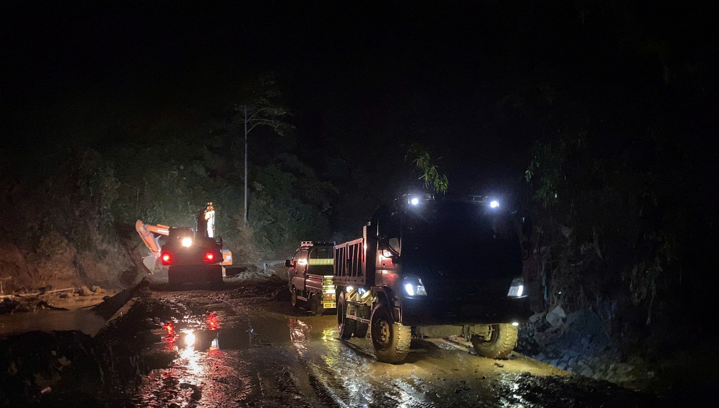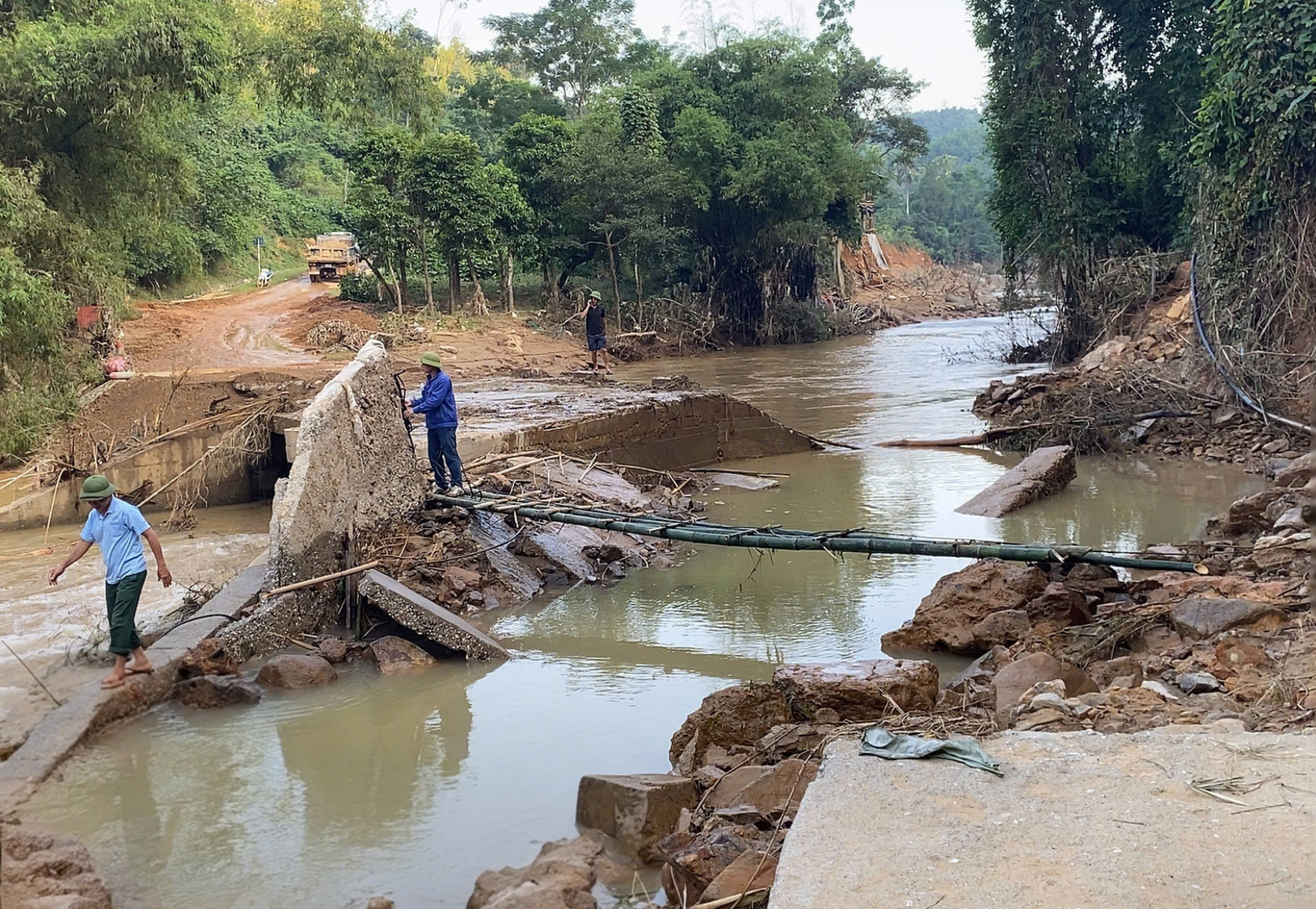 Trong bối cảnh đó, lực lượng tại chỗ nhanh chóng triển khai phương án “4 tại chỗ”. Một nhánh dân quân, công an và người dân xã mở đường tạm bằng xe xúc nhỏ từ hướng Thần Sa để xe máy có thể vận chuyển nhu yếu phẩm tạm thời.