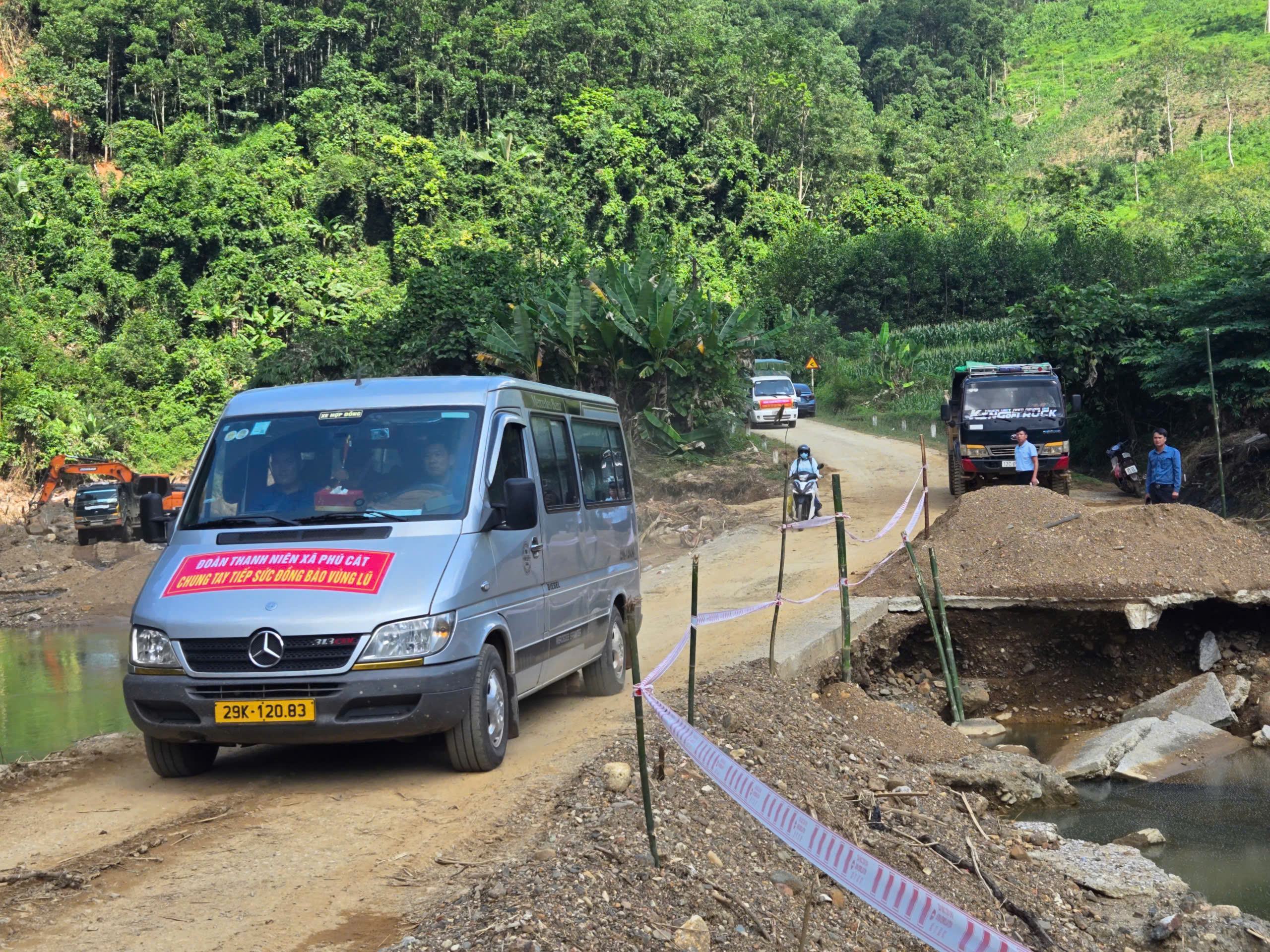 Ngay sáng sớm, những chiếc xe chở lương thực, hàng cứu trợ đầu tiên vượt qua đoạn ngầm, tiến thẳng vào trung tâm xã trong niềm vui hy vọng của bao người dân bị cô lập đang mong đợi nơi đây.