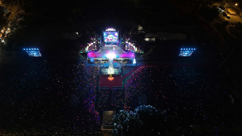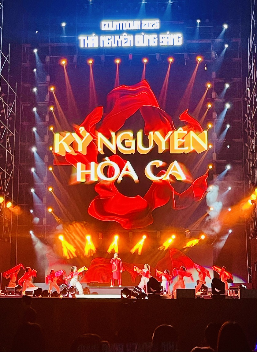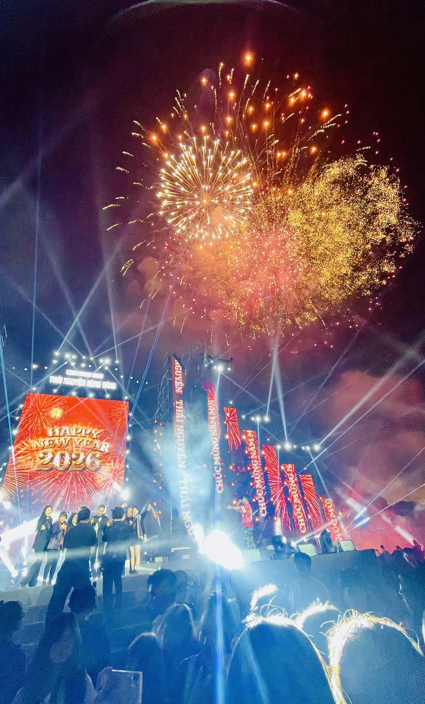 Suốt cả đêm nhạc, từ 20 giờ ngày 31/12/2025 đến thời khắc đầu tiên năm 2026, hàng vạn người dân Thái Nguyên đứng chật kín quảng trường Võ Nguyên Giáp và những khu phố lân cận đã chìm đắm trong những ca khúc, những màn biểu diễn ngợi ca Tổ quốc Việt Nam vừa trữ tình, vừa hùng tráng.